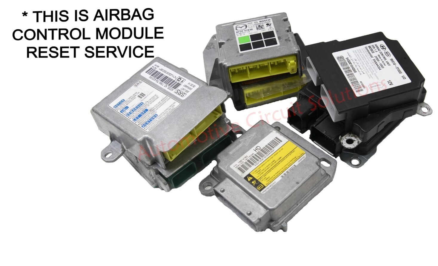 Please read the whole description... **This is a service to repair/reset your air bag control module. After a vehicle has been in an accident, the airbag module needs to be reset (cleared of hard crash codes) in order for the SRS/Airbag System to function properly again.** **Your module will be reset and shipped back to you within 1-2 days of us receiving it.** Every SRS Airbag Control Module can undergo a reset, unless it has incurred damage due to unusual circumstances like flooding, fire, or any other rare electrical malfunction. **Check the Compatibility!** **The following is a list of vehicles that ARE compatible with the service:** - **All Toyota Models** **_(with the exception of the a few late models. If the car is less then 3 years old send us a picture of the module for our approval before sending it to us. Thank you)_** \* If you have these codes after we reset the module B1650 B1785 B1786 all you need to do is reconfigure/rezero the passenger front seat. Here is a [quick video](https://www.youtube.com/watch?v=PUHYiqsPAu8) showing how to do the procedure with a capable scan tool. **How it Works:** 1. Purchase our service 2. 3. Send us your SRS Module 4. We do all of the work usually within 24 business hours of arrival. We will mail it back within those 24 hours using USPS Priority Mail 2-3 Day Service (unless you select Express 1-2 day shipping) and you will receive a tracking number. The** **actual repair process is prompt** **, and we aim to return your UNIT to you as soon as possible.** # **Terms and Conditions:** **1. What we offer is a reset service, not a part. We do not offer modules for sale.** **2. You are responsible to package your module in such a way that it will not be damaged. We will be returning your module in the same package.** **3. Very rarely, there may be modules we cannot reset. In this case, we will mail it back to you and you will receive a full refund.** **4. If there is a problem with your module once you receive it back, ALWAYS contact us first prior to leaving feedback! We will work hard to resolve any problem.** **5. The maximum reversal for any purchase or "order" you're placing with us, is equal to the total cost paid to us – Automotive Circuit Solutions. You understand and agree not to pursue any legal action, or personal demand, or any claims of any kind that is greater than the cost you paid to us for the services. We are not responsible for any missing property pertaining to the original contents shipped to us. Including bolts, nuts, screws, wiring harness, plugs, and etc.** # Warranty Info: 1. We Guarantee that we will: Erase all Hard Crash Codes that are stored during an accident. We do not guarantee that your light will go away If your light is on upon installation of the module then you may have other faults such as a blown seat-belt (just because it is working doesn't mean that it isn't internally blown). To determine why the light is on you will need to get it properly diagnosed with a good scanner capable of reading and erasing SRS fault codes. (we are not responsible for any diagnostic charges) Money Back Guarantee terms If for some reason there are still crash codes stored on the module after our reset. We will issue you a full refund as long as you provide a diagnostic report with the crash codes. (we are not responsible for any diagnostic charges) PART NUMBERs (this is just for reference, we are not limited to these part numbers.): _89170-F4320, 21-10-2232, 89170-84C40, 89170-76310, 89170-53850, 89170-50K80, 89170-48D60, 89170-48C50, 89170-48C00, 89170-47840, 89170-47810, 89170-42A60, 89170-42A20, 89170-42A10, 89170-42880, 89170-42870, 89170-33F70, 89170-33F40, 89170-33D50, 89170-33D30, 89170-33C00, 89170-33A80, 89170-33700, 89170-33690, 89170-12J100, 89170-12J000, 89170-12G60, 89170-12E90, 89170-12E80, 89170-12E20, 89170-12D90, 89170-10110, 89170-0R360, 89170-0R350, 89170-0R220, 89170-0E410, 89170-0E310, 89170-0E100, 89170-06A60, 89170-06A50, 89170-06A40, 89170-06880, 89170-06671, 89170-06641, 89170-06640, 89170-02R10, 89170-02M50, 89170-F4170, 20-06-241, 89170-F4160, 20-03-061, 89170-F4150, 19-01-041, 89170-F4140, 18-12-281, 89170-F4130, 17-04-131, 89170-F4090, 17-12-041, 89170-F4080, 19-04-031, 89170-F4070, 19-09-031, 89170-F4040, 18-07-181, 89170-F4020, 19-08-291, 89170-F4010, 18-01-161, 89170-78080, 20-09-011, 89170-78070, 20-05-051, 89170-78050, 20-09-241, 89170-78040, 17-05-111, 89170-78030, 21-07-221, 89170-78020, 17-05-191, 89170-78010, 16-02-021, 89170-76270, 20-03-101, 89170-76250, 20-01-301, 89170-62020, 21-06-111, 89170-60F30, 21-05-071, 89170-60F20, 21-02-191, 89170-60F00, 18-11-211, 89170-60E80, 20-05-141, 89170-60E70, 19-06-051, 89170-60E60, 21-10-161, 89170-60E50, 20-11-301, 89170-60E10, 21-08-191, 89170-60D20, 17-05-161, 89170-60C50, 17-05-081, 89170-60C30, 19-09-201, 89170-60C10, 18-05-271, 89170-60C00, 18-04-091, 89170-60B90, 17-07-061, 89170-60B70, 18-09-071, 89170-60B60, 19-10-281, 89170-60B50, 19-07-101, 89170-60710, 22-10-121, 89170-60700, 16-09-081, 89170-58140, 21-02-011, 89170-58120, 15-11-061, 89170-58100, 20-08-071, 89170-58090, 22-08-181, 89170-58080, 21-02-231, 89170-53700, 18-08-291, 89170-53670, 18-12-241, 89170-53660, 18-06-291, 89170-53650, 21-09-131, 89170-53620, 18-07-091, 89170-53600, 20-09-161, 89170-53590, 15-10-161, 89170-53580, 15-11-061, 89170-53430, 17-07-281, 89170-53410, 15-11-241, 89170-53400, 21-08-301, 89170-53390, 15-10-161, 89170-53380, 19-01-291, 89170-53370, 19-07-231, 89170-53360, 16-04-211, 89170-53330, 15-10-161, 89170-53320, 19-08-151, 89170-53300, 15-10-161, 89170-53220, 19-04-041, 89170-52P20, 17-11-271, 89170-52P00, 19-09-301, 89170-52N40, 17-11-161, 89170-52N30, 19-11-191, 89170-52N20, 21-03-161, 89170-52N10, 22-04-131, 89170-52M40, 18-10-241, 89170-52L90, 18-08-201, 89170-52L80, 18-03-131, 89170-52K30, 21-03-181, 89170-52K20, 16-09-051, 89170-52K10, 15-11-061, 89170-52K00, 15-11-061, 89170-52B80, 15-10-161, 89170-48B80_This is the list of known model numbers. However,