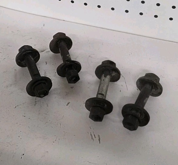 This set of rear camber bolts need cleaned up but these are straight and in good usable condition. The one has some undercoating on it. NY87 S24