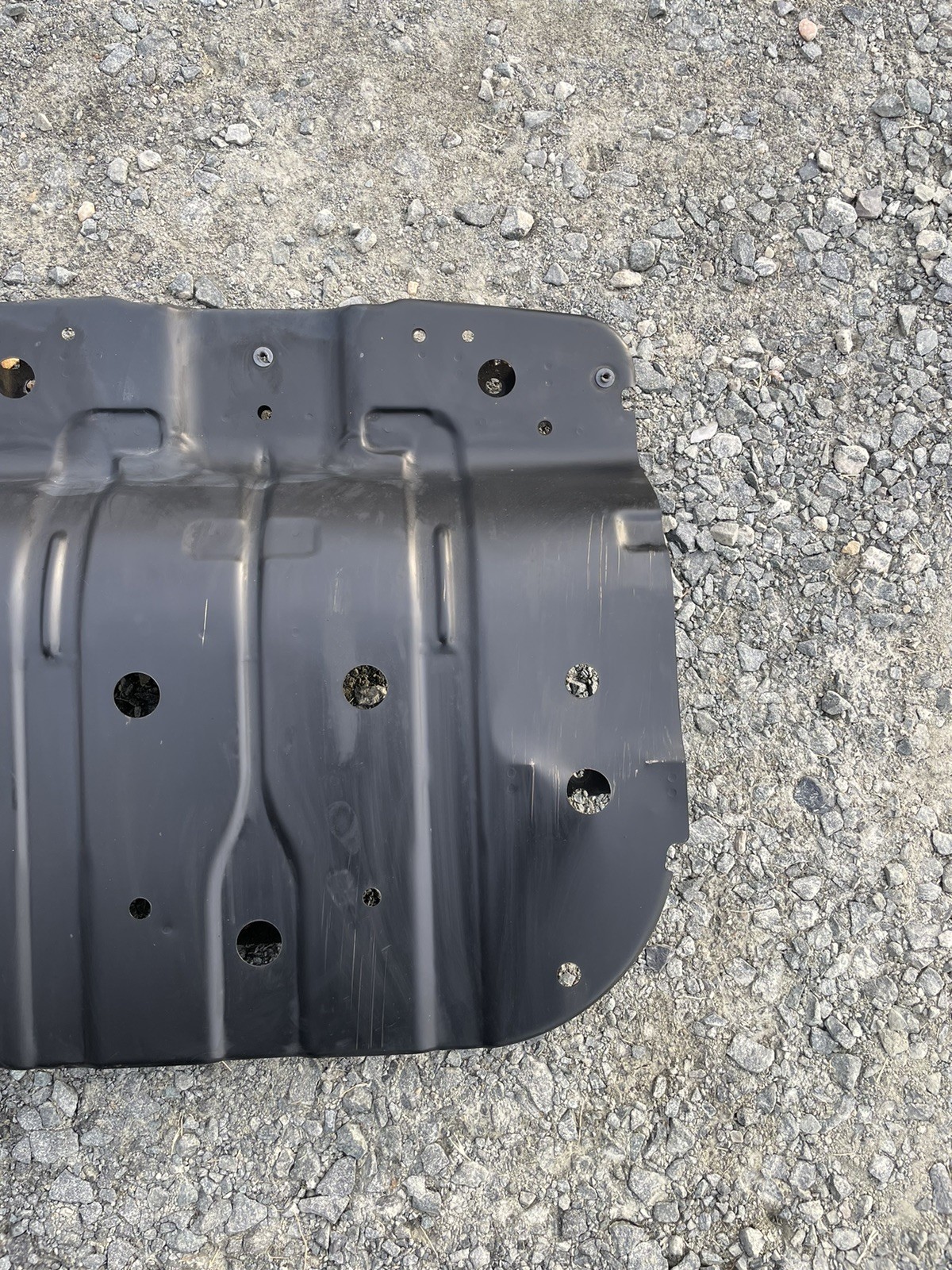 OEM skid plate from a 2020 Tundra. No rust, but one dent (pictured). Aligns and mounts properly. The product is a Genuine OEM Toyota Tundra 2007-2022 Engine Skid Plate specifically designed for the Crewmax and other Tundra models. It is a used part with a mileage of 35,000 miles, making it a reliable and high-quality option for Toyota Tundra owners looking to protect their vehicle's engine. The skid plate is placed on the front of the vehicle, providing added protection against rocks, debris, and other hazards that can damage the engine during off-road driving or regular use.