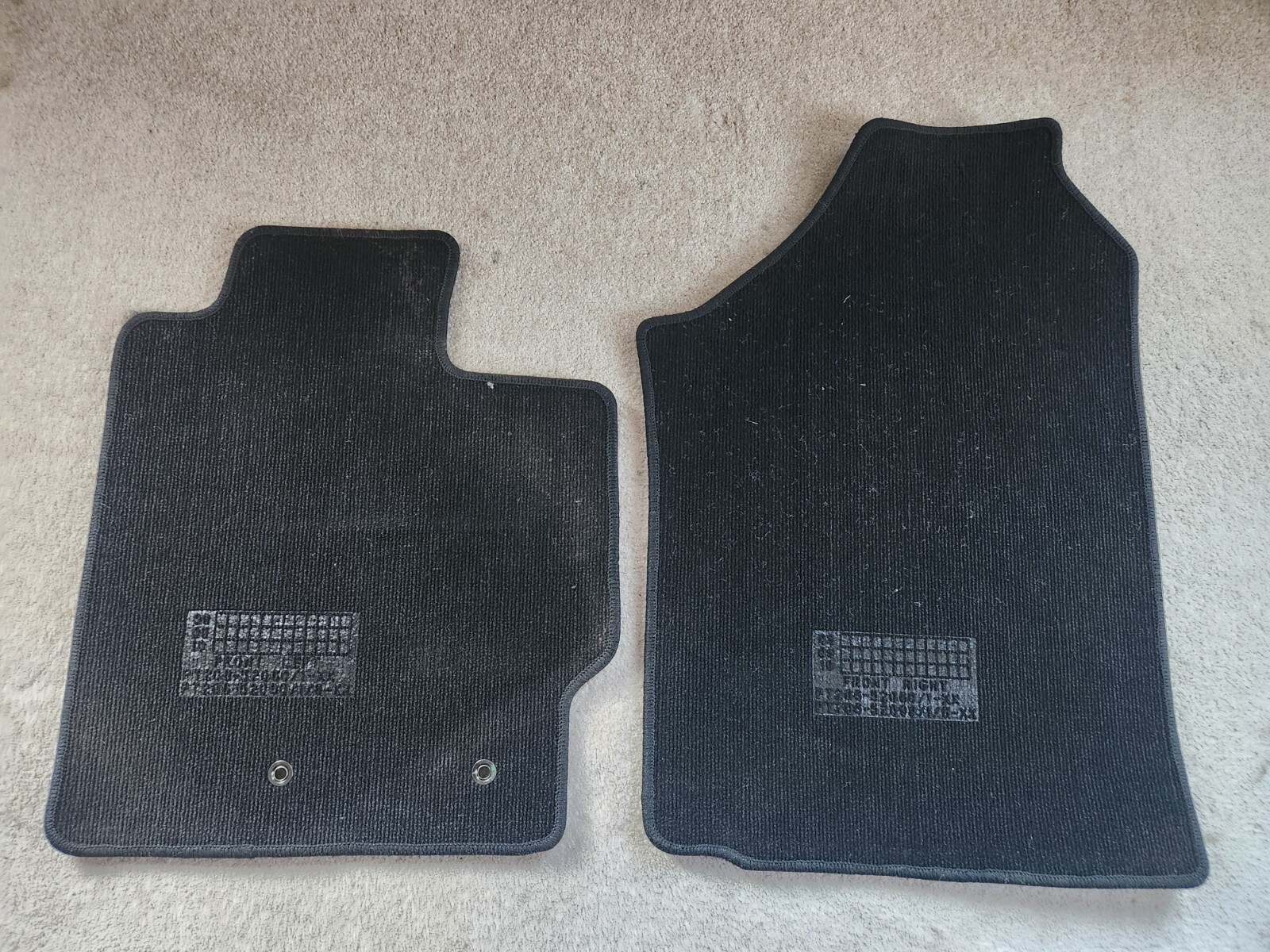 Toyota Yaris Front Carpet Floor Mats (o.e.m.) in excellent condition with no wear..Not sure what year's they fit so,your home work would beĀ helpful before purchasing. tks...Like New Condition!!!