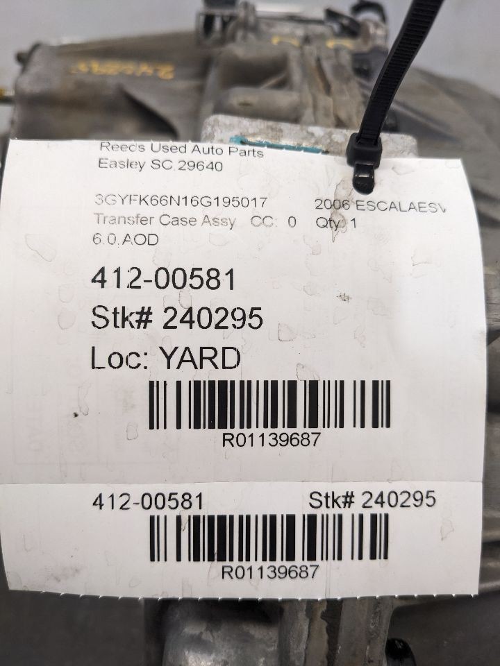 Transfer Case Opt NR3 Fits 03-06 ESCALADE 1139687 Description Donor Vehicle Model : ESCALAESV Year : 2006 Mileage : 184000 (0 = not available or unknown) Stock Number : 240295 Notes : 6.0,AOD This Part Will Fit These Makes And Models With These Options ESCALADE 03-05 ESCALADE 06 opt NR3 ESCALADE ESV 03-05 ESCALADE ESV 06 opt NR3 ESCALADE EXT 03-05 ESCALADE EXT 06 opt NR3 SIERRA DENALI 03-06 opt NR3 SUBURBAN 1500 06 AWD, opt NR3 YUKON 03-06 Denali, opt NR3 YUKON XL 1500 03-06 Denali, opt NR3 About UsPaymentShippingReturnsWarranty About Us We are happy to verify fitment for you prior to purchase via your vehicle’s VIN (Vehicle Identification Number). Please contact us with any questions prior to purchasing. Orders are sent to the shipping department throughout the day therefore we cannot guarantee adjustments to orders after payment is received. **Parts Grading** A standard code system is used to communicate the condition and quality of a part between automotive recyclers, automotive repair shops, and insurers. Knowing how these codes are used will help you understand whether the part meets your expectations before you buy it and what you can expect from the part when you receive it. **A Grade**\- The highest quality part. It is of low miles and/or exceptional condition for its age. **B Grade**\- The second level quality part. It is of average miles and normal condition for its age. **C Grade**\- The third level quality part. It has high miles and/or light damage. **No Grade**\- A part that has not yet been graded. Payment All orders must be paid in full prior to shipment. We accept credit card and cash for Local Pickup orders. If payment is not received, an Unpaid Item case will be opened for the sake of seller fee reimbursement. Shipping Items are shipped after receiving cleared payment. We ship to US addresses within the continental 48 states. Shipping to AK, HI, PO Box, APO, FPO & US Protectorates: please contact first as we may be able to arrange shipping for an additional charge (depending on the part). Freight items must have a commercial address and part fitment must be verified via VIN prior to shipment. Returns All parts must be returned in their original condition to receive full credit. Please message us with questions. Warranty All parts come with a standard warranty, please contact us for details prior to ordering. Timeframe is listed within the Warranty section of the listing for each part. Warranty claims must be made with our warranty department, details will be included with the packing slip for each order. Labor and costs associated with part installation are not included in the warranty, parts only.   Copyright © 2022, All Rights Reserved. Copyright © 2022, All rights reserved. Design & Developed By : eFusionWorld