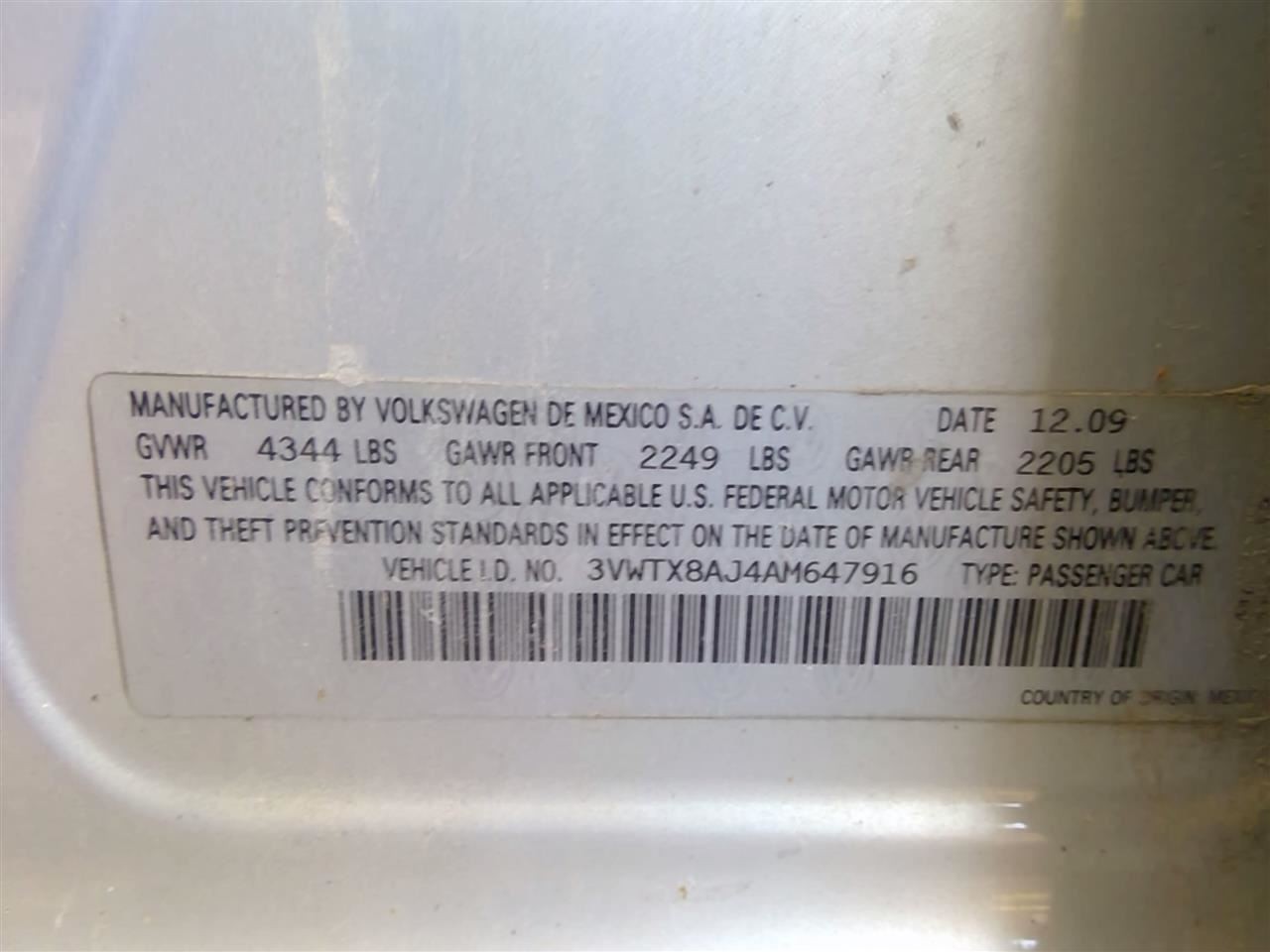 - VIN #: 3VWTX8AJ4AM647916