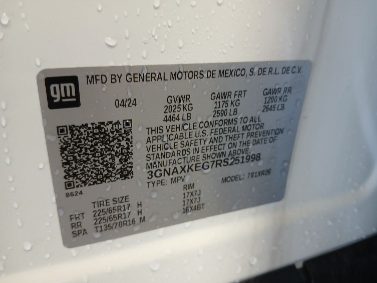 - VIN #: 3GNAXKEG7RS251998