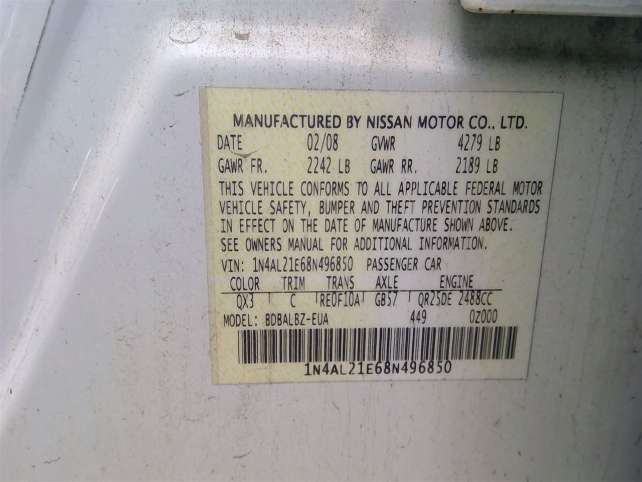 - VIN #: 1N4AL21E68N496850