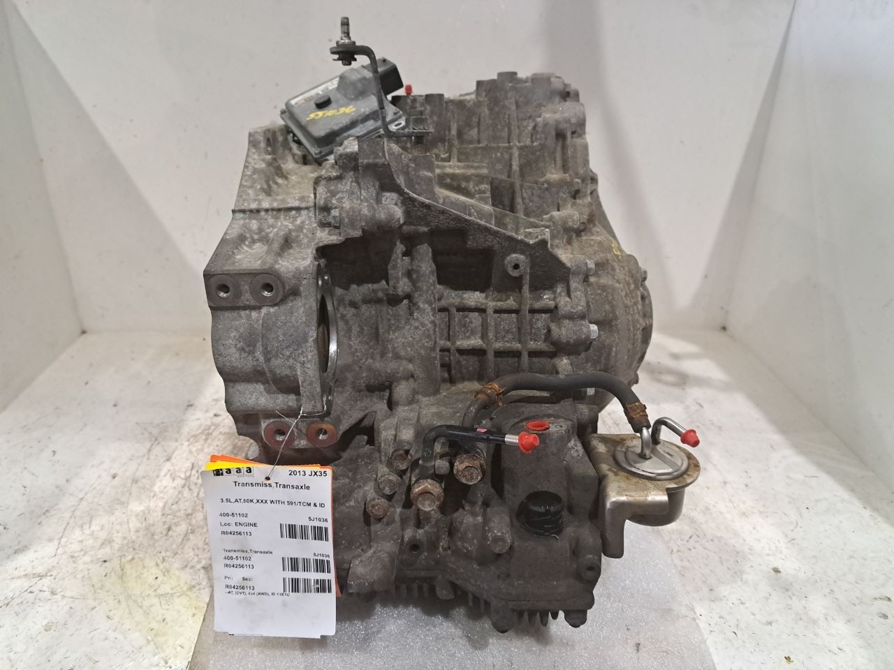Item Description **6 MONTH WARRANTY!! 60 DAY NO HASSLE RETURNS!!** **This for a USED OEM Transmission/Transaxle Assembly pulled from a 2013 JX35 with 80000 actual miles on it.** **Here are our part notes about this specific part:** **3.5L,AT,80K,WITH 591/TCM** **Our Part #: 400-51102, 4256113** **Our Stock#: 5J1036** Please see the fitment section below to make sure this will fit your vehicle. Pay special attention to any options listed!!! In some cases, it may only fit vehicle with certain options or specific ID#s as listed below. **INFINITI JX35 13 AT, (CVT), 4x4 (AWD), ID 1XE1C** **MURANO 09 AT; (CVT), 4x4 (AWD), from 4/08** **MURANO 10-14 AT; (CVT), 4x4 (AWD)** Whats Included? Whats Included? FAQ/ Help Shipping Payment Returns/Warranty #### Whats Included? ``` Here is a short description of what will generally be included with your item. If you would like more information or are unsure if something will come with your item, PLEASE ASK!! A/C Compressor: Includes the clutch/pulley assembly A/C Condenser: Sensors and hoses are not included ABS Units: Include the ATTACHED electronic module unless otherwise noted Alternator: Includes the pulley. Any brackets are not included Axle/CV shaft: Does not include the axle nut Blower Motor: Include the squirrel cage/fan blade Caliper: Includes the bracket and slides. Slides are not covered under warranty Column Switch: Includes wiring (if applicable) up to the first point it can be unplugged Control Arm: Includes the ball joint and any bushings Coolant Overflow Bottle: Cap is included Cowl Vent Panel: See Our Part notes, often sold as one side only Differential Carrier: Does not include axles Door Trim Panel: Includes handle and armrest. Does not include window/lock switches Engine: Included for convenience unless otherwise noted. These parts are not covered under warranty: Intake manifold, fuel injectors, oil pan, sensors, water pump Not included: Throttle body, Turbo, wiring harness exhaust manifold (may be left on in certain cases) Exhaust Manifold: Does not include turbo where applicable Fan Assembly: Includes motors, shroud, and blades. Fuel injectors: See our part notes Fuel Filler Door: Includes hinge. Does not include bolts/hardware Fuel Pump: Includes sending unit and any molded hoses that are non-removable Headlight: Brackets are included unless otherwise noted. HID headlights include the bulbs and ballast Hub: Includes wheel studs Ignition Coil(s): See part notes Interior Rear View Mirror: Does not included bracket glued to windshield Jack: See part notes. If noted as assembly, it will include the lug wrench Mass Airflow Sensor: Does not include housing unless pictured Power Steering Pump: Includes pulley and ATTACHED reservoir. Remote reservoirs and brackets will not be included Power Steering Gear: Includes pitman arm Rack and Pinion: Includes tie rods but they are not covered under warranty Radio: Pay special attention to our fitment description. Often times radios are more than one piece and we sell them each separately Spindle/Knuckle: Does not include hub unless noted Starter: Includes solenoid Strut: Struts are left assembled and include top plate, spring, and dust boot (dust boots on used struts are rarely in perfect shape) Stabilizer Bar: Does not include links or bushings Sunvisor: Does not include clip Taillight: Pay special attention to fitment as we list the trunk lid mounted taillights as well as the corners. Does not include bulbs Temperature Control: Includes all knobs, buttons, and sliders Throttle Body: Includes sensors but they are not covered under our warranty Transmission: Automatic transmissions include torque converters and sensors. Many newer transmissions require a relearn/programming procedure. Manual transmissions do not include any part of the clutch system. Transfer Case: Does not include electric shift motor Washer Reservoir/Bottle: Includes cap unless noted Wheel/Rim: Does not include center cap, tire, or lug nuts Window Regulator: Does not include motor unless noted (most are noted with motor) Wiper Motor: Does not include arms or transmission unless noted Wiper Transmission: Does not include motor or arms unless noted ``` FAQ/ Help #### FAQ/ Help ``` Will this fit my vehicle? Is this the right part? This is the most common question that we get. The fitment information can be confusing if you don't buy replacement parts everyday. Please contact us if you are unsure!! We try to respond to questions as quickly as possible and we are more than happy to answer any questions as best as we can. In order to speed up the process, it is very helpful, but not required, for you to send us your full VIN number along with your question. It looks like its the same color as my car, how can I tell for sure? The best way is to match the manufacturer paint code. Most of the time we include the paint code in our part notes. If you don't know what a paint code is or where yours is located, please feel free to ask. We are happy to help. I only see photos of the vehicle and not the actual part you are selling. Can you send me some? Our most recent listings include actual photos when we can provide them. If you would like an actual photo, we are more than happy to take one after the purchase for your approval before the part ships. In certain cases we will take actual photos before a purchase is made. This is on a case by case basis. Send us a message and we will let you know if it is possible for us to do so I see a wheel that says it is "B" condition, what does that mean? Grading of parts is a very subjective process but we do our best to keep it uniform. Here is a brief description of wheel grades: A Condition, A-COND = This is the highest grade used wheel. It will have very minor imperfections but will be in better condition than 90% of vehicles on the road. B Condition, B-COND = This wheel will have some cosmetic imperfections. It is in average condition for the year and mileage of the donor vehicle. It may have minor sc