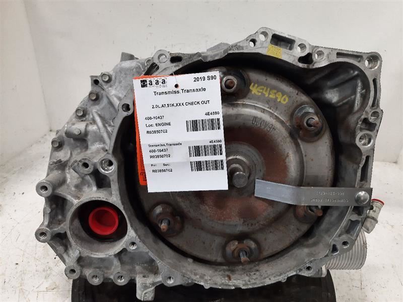 Item Description **6 MONTH WARRANTY!! 60 DAY NO HASSLE RETURNS!!** **This for a USED OEM Transmission/Transaxle Assembly pulled from a 2019 S90 with 51000 actual miles on it.** **Here are our part notes about this specific part:** **ET,2.0L,AT,51K** **Our Part #: 400-10437, 3850702** **Our Stock#: 4E4590** Please see the fitment section below to make sure this will fit your vehicle. Pay special attention to any options listed!!! In some cases, it may only fit vehicle with certain options or specific ID#s as listed below. **VOLVO S90 17 (AT), VIN 10 (4th and 5th digits, FWD)** **VOLVO S90 18-19 (AT), w/o hybrid; FWD** **VOLVO V90 18-21 V90 (AT), VIN 10 (4th and 5th digits, FWD)** Whats Included? Whats Included? FAQ/ Help Shipping Payment Returns/Warranty #### Whats Included? ``` Here is a short description of what will generally be included with your item. If you would like more information or are unsure if something will come with your item, PLEASE ASK!! A/C Compressor: Includes the clutch/pulley assembly A/C Condenser: Sensors and hoses are not included ABS Units: Include the ATTACHED electronic module unless otherwise noted Alternator: Includes the pulley. Any brackets are not included Axle/CV shaft: Does not include the axle nut Blower Motor: Include the squirrel cage/fan blade Caliper: Includes the bracket and slides. Slides are not covered under warranty Column Switch: Includes wiring (if applicable) up to the first point it can be unplugged Control Arm: Includes the ball joint and any bushings Coolant Overflow Bottle: Cap is included Cowl Vent Panel: See Our Part notes, often sold as one side only Differential Carrier: Does not include axles Door Trim Panel: Includes handle and armrest. Does not include window/lock switches Engine: Included for convenience unless otherwise noted. These parts are not covered under warranty: Intake manifold, fuel injectors, oil pan, sensors, water pump Not included: Throttle body, Turbo, wiring harness exhaust manifold (may be left on in certain cases) Exhaust Manifold: Does not include turbo where applicable Fan Assembly: Includes motors, shroud, and blades. Fuel injectors: See our part notes Fuel Filler Door: Includes hinge. Does not include bolts/hardware Fuel Pump: Includes sending unit and any molded hoses that are non-removable Headlight: Brackets are included unless otherwise noted. HID headlights include the bulbs and ballast Hub: Includes wheel studs Ignition Coil(s): See part notes Interior Rear View Mirror: Does not included bracket glued to windshield Jack: See part notes. If noted as assembly, it will include the lug wrench Mass Airflow Sensor: Does not include housing unless pictured Power Steering Pump: Includes pulley and ATTACHED reservoir. Remote reservoirs and brackets will not be included Power Steering Gear: Includes pitman arm Rack and Pinion: Includes tie rods but they are not covered under warranty Radio: Pay special attention to our fitment description. Often times radios are more than one piece and we sell them each separately Spindle/Knuckle: Does not include hub unless noted Starter: Includes solenoid Strut: Struts are left assembled and include top plate, spring, and dust boot (dust boots on used struts are rarely in perfect shape) Stabilizer Bar: Does not include links or bushings Sunvisor: Does not include clip Taillight: Pay special attention to fitment as we list the trunk lid mounted taillights as well as the corners. Does not include bulbs Temperature Control: Includes all knobs, buttons, and sliders Throttle Body: Includes sensors but they are not covered under our warranty Transmission: Automatic transmissions include torque converters and sensors. Many newer transmissions require a relearn/programming procedure. Manual transmissions do not include any part of the clutch system. Transfer Case: Does not include electric shift motor Washer Reservoir/Bottle: Includes cap unless noted Wheel/Rim: Does not include center cap, tire, or lug nuts Window Regulator: Does not include motor unless noted (most are noted with motor) Wiper Motor: Does not include arms or transmission unless noted Wiper Transmission: Does not include motor or arms unless noted ``` FAQ/ Help #### FAQ/ Help ``` Will this fit my vehicle? Is this the right part? This is the most common question that we get. The fitment information can be confusing if you don't buy replacement parts everyday. Please contact us if you are unsure!! We try to respond to questions as quickly as possible and we are more than happy to answer any questions as best as we can. In order to speed up the process, it is very helpful, but not required, for you to send us your full VIN number along with your question. It looks like its the same color as my car, how can I tell for sure? The best way is to match the manufacturer paint code. Most of the time we include the paint code in our part notes. If you don't know what a paint code is or where yours is located, please feel free to ask. We are happy to help. I only see photos of the vehicle and not the actual part you are selling. Can you send me some? Our most recent listings include actual photos when we can provide them. If you would like an actual photo, we are more than happy to take one after the purchase for your approval before the part ships. In certain cases we will take actual photos before a purchase is made. This is on a case by case basis. Send us a message and we will let you know if it is possible for us to do so I see a wheel that says it is "B" condition, what does that mean? Grading of parts is a very subjective process but we do our best to keep it uniform. Here is a brief description of wheel grades: A Condition, A-COND = This is the highest grade used wheel. It will have very minor imperfections but will be in better condition than 90% of vehicles on the road. B Condition, B-COND = This wheel will have some cosmetic imperfections. It is in average condition for the year and mileage of the donor vehicle. It may