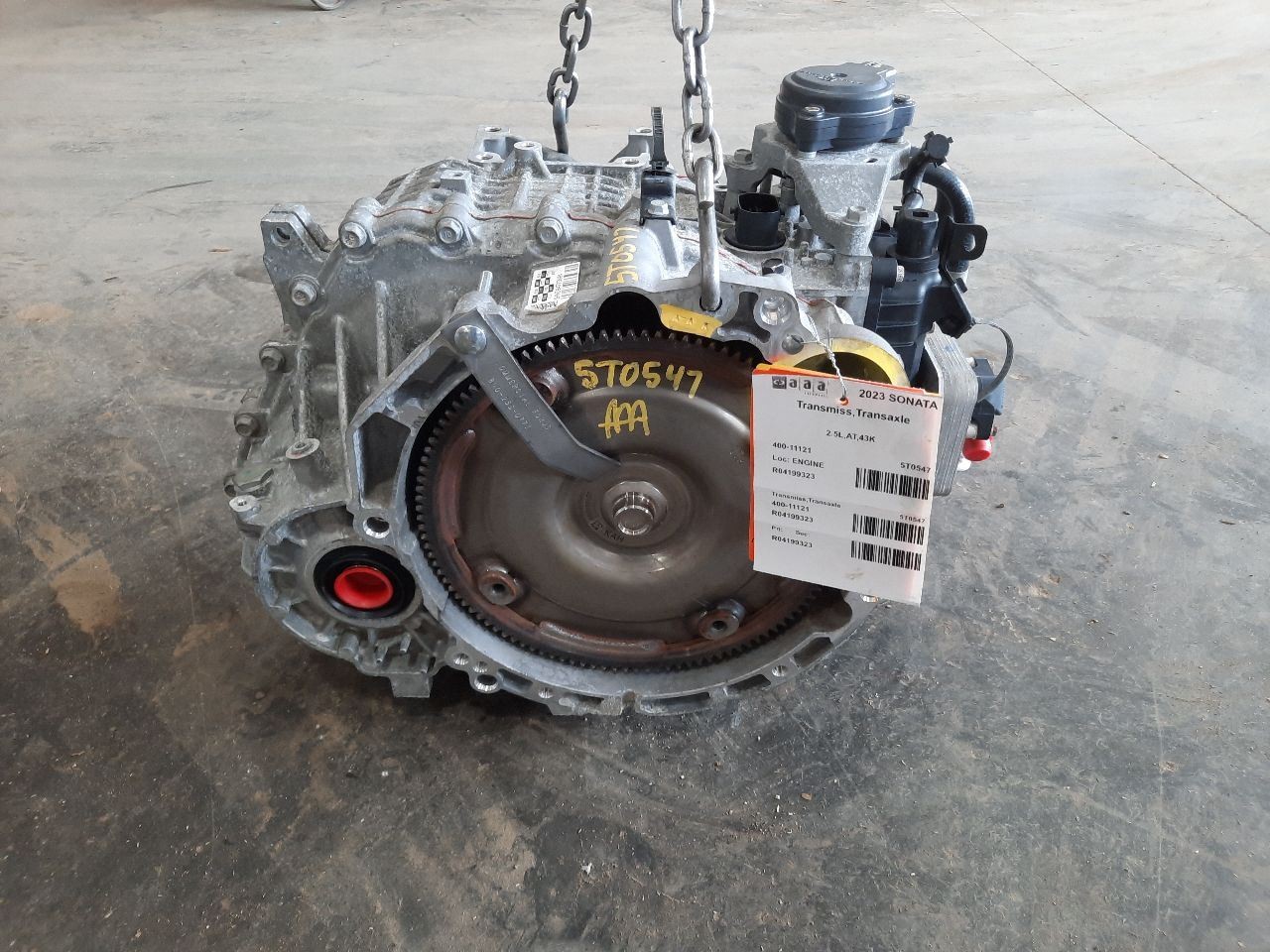 Item Description **6 MONTH WARRANTY!! 60 DAY NO HASSLE RETURNS!!** **This for a USED OEM Transmission/Transaxle Assembly pulled from a 2023 SONATA with 43000 actual miles on it.** **Here are our part notes about this specific part:** **2.5L,AT,43K** **Our Part #: 400-11121, 4199323** **Our Stock#: 5T0547** Please see the fitment section below to make sure this will fit your vehicle. Pay special attention to any options listed!!! In some cases, it may only fit vehicle with certain options or specific ID#s as listed below. **SONATA 20 (AT), 8 speed, 2.5L, w/automatic engine stop and start** **SONATA 21-23 (AT), 8 speed, 2.5L, naturally aspirated, w/automatic engine stop and start** Whats Included? Whats Included? FAQ/ Help Shipping Payment Returns/Warranty #### Whats Included? ``` Here is a short description of what will generally be included with your item. If you would like more information or are unsure if something will come with your item, PLEASE ASK!! A/C Compressor: Includes the clutch/pulley assembly A/C Condenser: Sensors and hoses are not included ABS Units: Include the ATTACHED electronic module unless otherwise noted Alternator: Includes the pulley. Any brackets are not included Axle/CV shaft: Does not include the axle nut Blower Motor: Include the squirrel cage/fan blade Caliper: Includes the bracket and slides. Slides are not covered under warranty Column Switch: Includes wiring (if applicable) up to the first point it can be unplugged Control Arm: Includes the ball joint and any bushings Coolant Overflow Bottle: Cap is included Cowl Vent Panel: See Our Part notes, often sold as one side only Differential Carrier: Does not include axles Door Trim Panel: Includes handle and armrest. Does not include window/lock switches Engine: Included for convenience unless otherwise noted. These parts are not covered under warranty: Intake manifold, fuel injectors, oil pan, sensors, water pump Not included: Throttle body, Turbo, wiring harness exhaust manifold (may be left on in certain cases) Exhaust Manifold: Does not include turbo where applicable Fan Assembly: Includes motors, shroud, and blades. Fuel injectors: See our part notes Fuel Filler Door: Includes hinge. Does not include bolts/hardware Fuel Pump: Includes sending unit and any molded hoses that are non-removable Headlight: Brackets are included unless otherwise noted. HID headlights include the bulbs and ballast Hub: Includes wheel studs Ignition Coil(s): See part notes Interior Rear View Mirror: Does not included bracket glued to windshield Jack: See part notes. If noted as assembly, it will include the lug wrench Mass Airflow Sensor: Does not include housing unless pictured Power Steering Pump: Includes pulley and ATTACHED reservoir. Remote reservoirs and brackets will not be included Power Steering Gear: Includes pitman arm Rack and Pinion: Includes tie rods but they are not covered under warranty Radio: Pay special attention to our fitment description. Often times radios are more than one piece and we sell them each separately Spindle/Knuckle: Does not include hub unless noted Starter: Includes solenoid Strut: Struts are left assembled and include top plate, spring, and dust boot (dust boots on used struts are rarely in perfect shape) Stabilizer Bar: Does not include links or bushings Sunvisor: Does not include clip Taillight: Pay special attention to fitment as we list the trunk lid mounted taillights as well as the corners. Does not include bulbs Temperature Control: Includes all knobs, buttons, and sliders Throttle Body: Includes sensors but they are not covered under our warranty Transmission: Automatic transmissions include torque converters and sensors. Many newer transmissions require a relearn/programming procedure. Manual transmissions do not include any part of the clutch system. Transfer Case: Does not include electric shift motor Washer Reservoir/Bottle: Includes cap unless noted Wheel/Rim: Does not include center cap, tire, or lug nuts Window Regulator: Does not include motor unless noted (most are noted with motor) Wiper Motor: Does not include arms or transmission unless noted Wiper Transmission: Does not include motor or arms unless noted ``` FAQ/ Help #### FAQ/ Help ``` Will this fit my vehicle? Is this the right part? This is the most common question that we get. The fitment information can be confusing if you don't buy replacement parts everyday. Please contact us if you are unsure!! We try to respond to questions as quickly as possible and we are more than happy to answer any questions as best as we can. In order to speed up the process, it is very helpful, but not required, for you to send us your full VIN number along with your question. It looks like its the same color as my car, how can I tell for sure? The best way is to match the manufacturer paint code. Most of the time we include the paint code in our part notes. If you don't know what a paint code is or where yours is located, please feel free to ask. We are happy to help. I only see photos of the vehicle and not the actual part you are selling. Can you send me some? Our most recent listings include actual photos when we can provide them. If you would like an actual photo, we are more than happy to take one after the purchase for your approval before the part ships. In certain cases we will take actual photos before a purchase is made. This is on a case by case basis. Send us a message and we will let you know if it is possible for us to do so I see a wheel that says it is "B" condition, what does that mean? Grading of parts is a very subjective process but we do our best to keep it uniform. Here is a brief description of wheel grades: A Condition, A-COND = This is the highest grade used wheel. It will have very minor imperfections but will be in better condition than 90% of vehicles on the road. B Condition, B-COND = This wheel will have some cosmetic imperfections. It is in average condition for the year and mileage of the donor vehicle. It ma