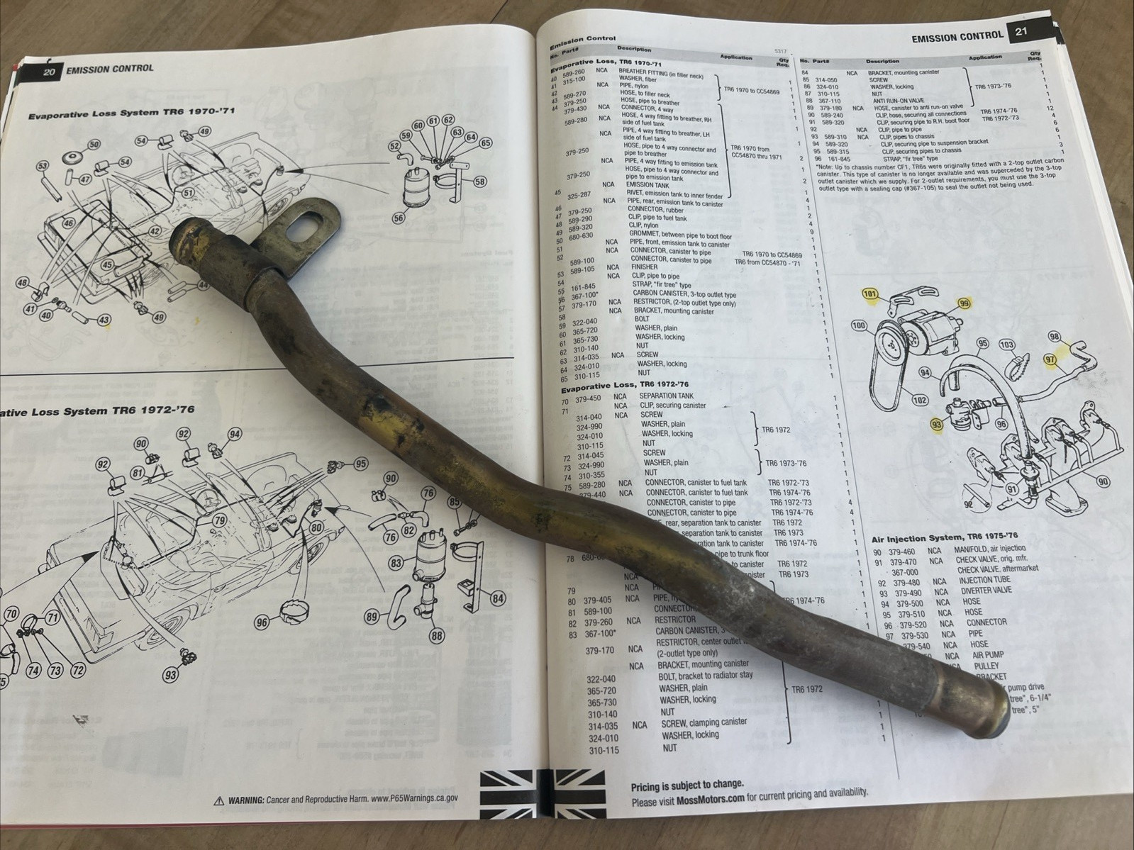 I've removed the emission equipment off my 76TR6.....which I've owned since 1977. All emission equipment I removed works as designed prior to it's removal. Pipe appears to be in good used condition. Surface rust and no visible damage, cracks, or areas of potential fume leakage. My TR6 has about 50k miles so this part is low usage but is 50 years old. Thanks for looking. Price is firm, please no offers. All questions will be answered.