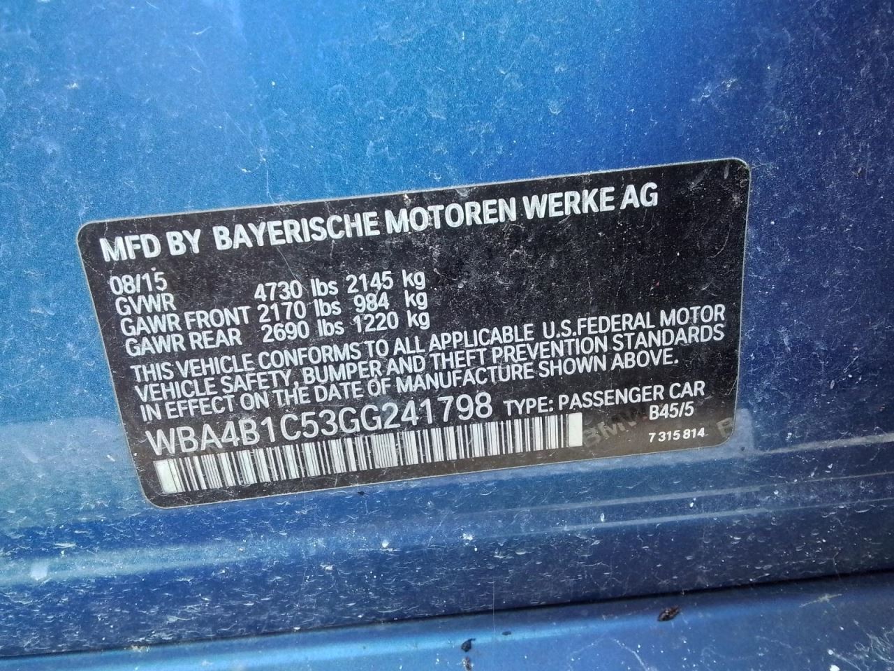 - VIN #: WBA4B1C53GG241798