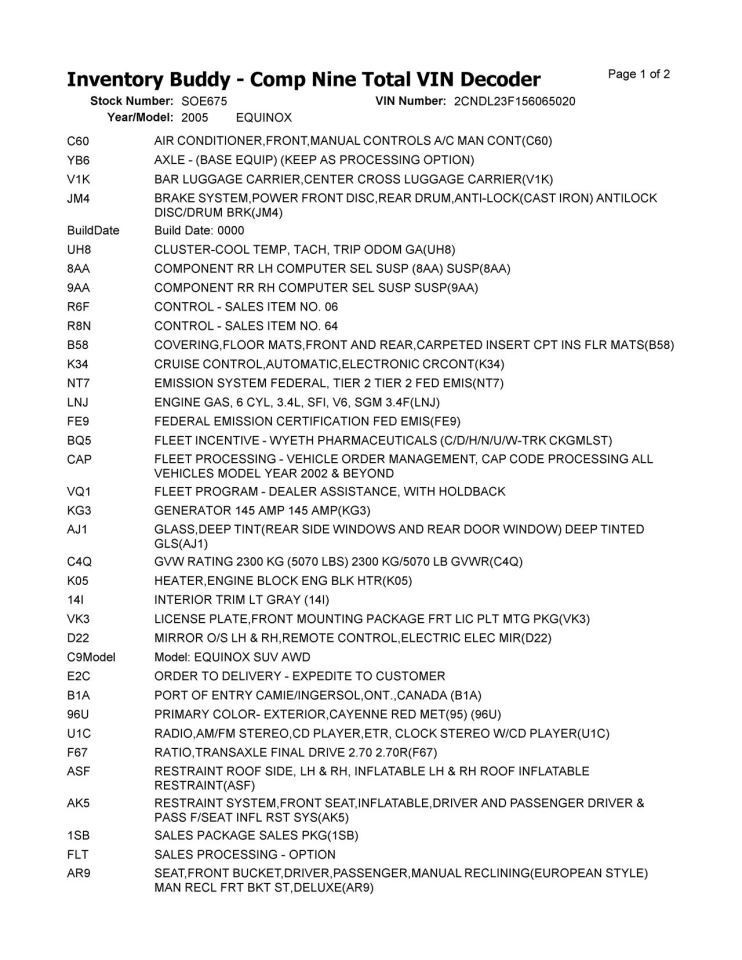- Donor VIN: 2CNDL23F156065020