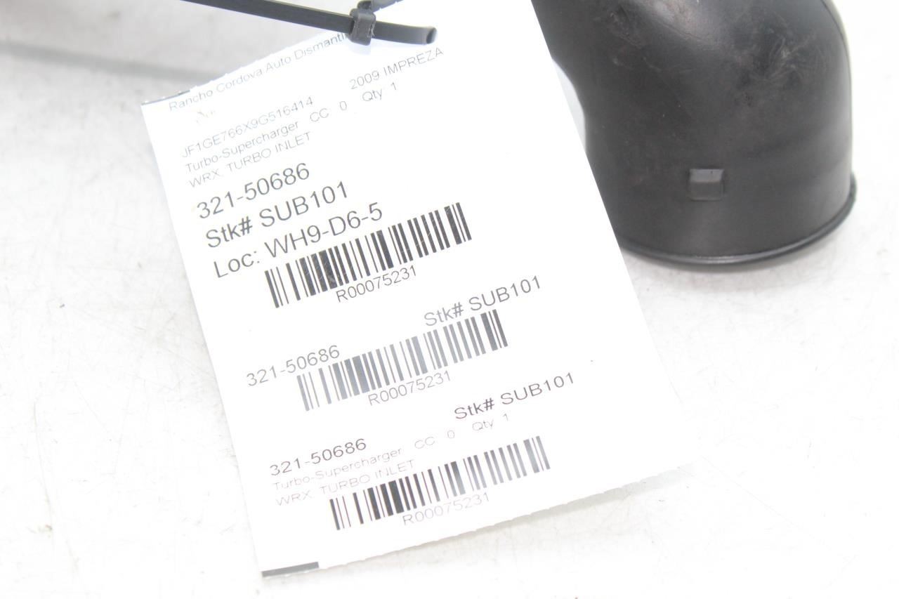 Description Donor Vehicle VIN: JF1GE766X9G516414 Model: IMPREZA Year: 2009 Mileage: 124000 (0 = not available or unknown) Stock Number: SUB101 Store Number: 1 Part Detail Part Grade: A Part Category: U Part Placement: Notes: WRX, TURBO INLET This part will fit these makes and models with these options FORESTER 09-13 (Turbo) IMPREZA 08-09 (2.5L), WRX IMPREZA 09-10 (2.5L), GT IMPREZA 10 (2.5L), WRX, AT WARRANTY / GUARANTEE **Return Policy** All parts we sell come with a **30 Day Money Back Guarantee** unless otherwise stated. The 30 day period starts when you take possession of the part. We do not cover the cost of labor charges during the installation of your parts. All original shipping costs are non-refundable. **Standard Warranty** We offer a standard warranty on all mechanical parts. This covers the part only, no labor charges to install the part. We are not responsible for any improper installation or misdiagnosis. SHIPPING NOTESABOUT USHELP **Rancho Cordova Auto Dismantling** ships to US addresses within the continental 48 states. **Shipping to Alaska, Hawaii, Puerto Rico, APO, FPO or PO Box addresses** is available for select parts only. **Local Pick-up at our facilities is available.** Please contact us prior to your purchase to arrange local pick-up. Buyer must select 'Buy It Now' prior to local pick-up. **Please contact us prior to purchasing this part** if you have any questions regarding our business policies, the warranties or guaranties we offer or the fitment of this part with your vehicle. **Parts Grading.** A standard code system is used to communicate the condition and quality of a part between automotive recyclers, automotive repair shops, and insurers. Knowing how these codes are used will help you understand whether the part meets your expectations before you buy it and what you can expect from the part when you receive it. **A Grade** \- The highest quality part. It is of low miles and/or exceptional condition for its age. **B Grade** \- The second level quality part. It is of average miles and normal condition for its age. **C Grade** \- The third level quality part. It has high miles and/or light damage. **No Grade** \- A part that has not yet been graded.