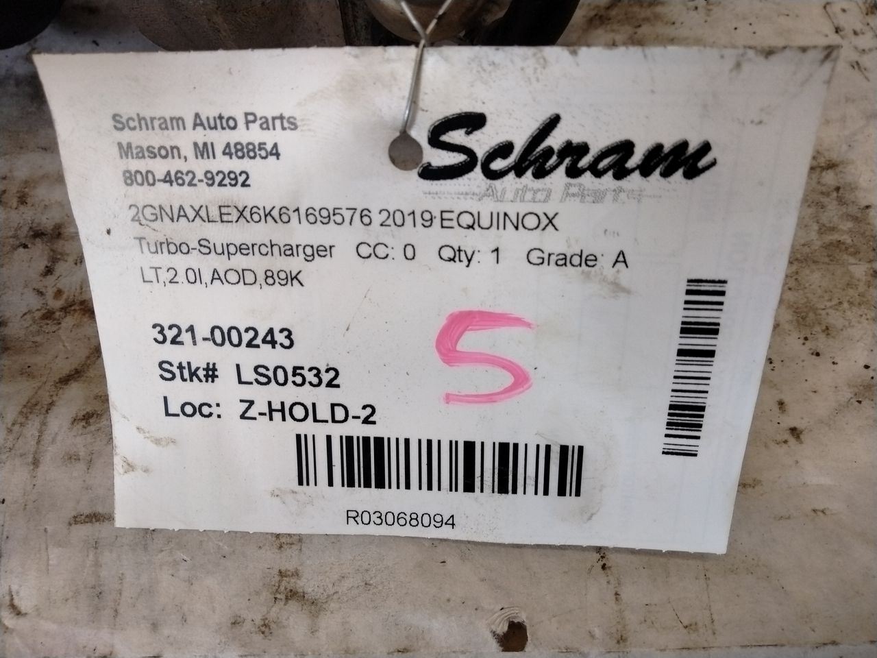1923   Description LT,2.0l,AOD,89K Mileage: 89000 This item will fit the following vehicles/applications: ATS 13-15 (2.0L) ATS 16-18 2.0L CAMARO 16 (2.0L, turbocharger) CAMARO 17-23 2.0L (turbocharger) CT6 16-18 2.0L CTS 14-19 2.0L ENVISION 16-20 EQUINOX 18-20 2.0L MALIBU 13-15 (2.0L) MALIBU 16 (VIN Z, 4th digit, New Style), 2.0L MALIBU 17-22 2.0L REGAL 14-20 (2.0L) TERRAIN 18-19 2.0L TERRAIN 20 2.0L, ID 12674684 TERRAIN 20 2.0L, ID 25201316 TRAVERSE 18-19 (2.0L) **Boost Your Vehicle's Performance with a Factory Turbo or Supercharger!** **Schram Auto and Truck Parts - Turbo/Supercharger** Elevate your vehicle's power and performance with a dependable **Turbo/Supercharger**. This listing provides you with the opportunity to enhance your engine's output and experience an exhilarating driving experience. **Fitment Assurance** Ensuring the correct fitment of the turbo/supercharger for your vehicle is essential to maximize its performance gains. The responsibility for fitment lies with the buyer, so please use the provided part number, pictures, and description to verify compatibility with your specific vehicle model. **Expert Guidance** If you have any questions or need expert advice, our experienced team is available to assist you. We're dedicated to helping you choose the right turbo/supercharger for your vehicle's performance goals. Experience the thrill of increased power and performance by selecting a high-quality turbo/supercharger from Schram Auto and Truck Parts. Unleash your vehicle's true potential with our reliable orignial equipment options! Vehicle 2019 EQUINOX Mileage 89000 Part Grade A What's this?