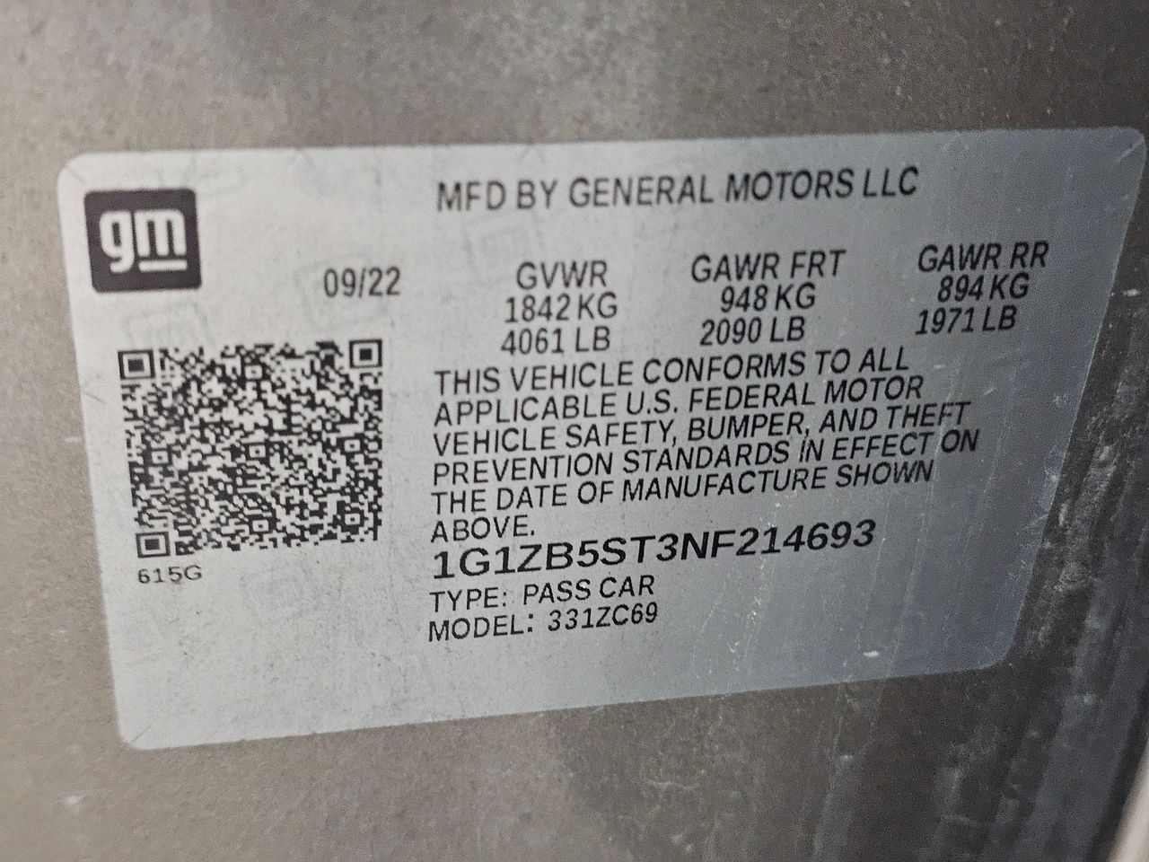 - VIN #: 1G1ZB5ST3NF214693