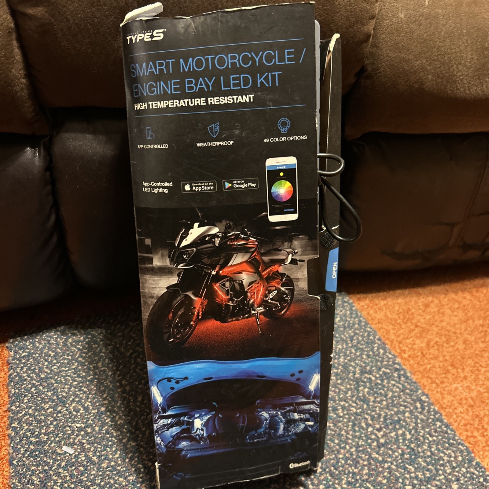 The TYPE S Smart Motorcycle/Car Engine Bay LED Lighting Kit 57363 is a multicolor LED strip designed for underbody lighting. This universal fitment kit is road legal and suitable for various vehicles. Made in China, this kit features high-quality LED lighting technology for added visibility and style. With the OE/OEM part number 643334573637 and manufacturer part number LM57363, this lighting kit is a perfect addition for motorcycle and car enthusiasts looking to enhance their engine bay with a sleek and bright LED setup. works perfect. The box has been torn.
