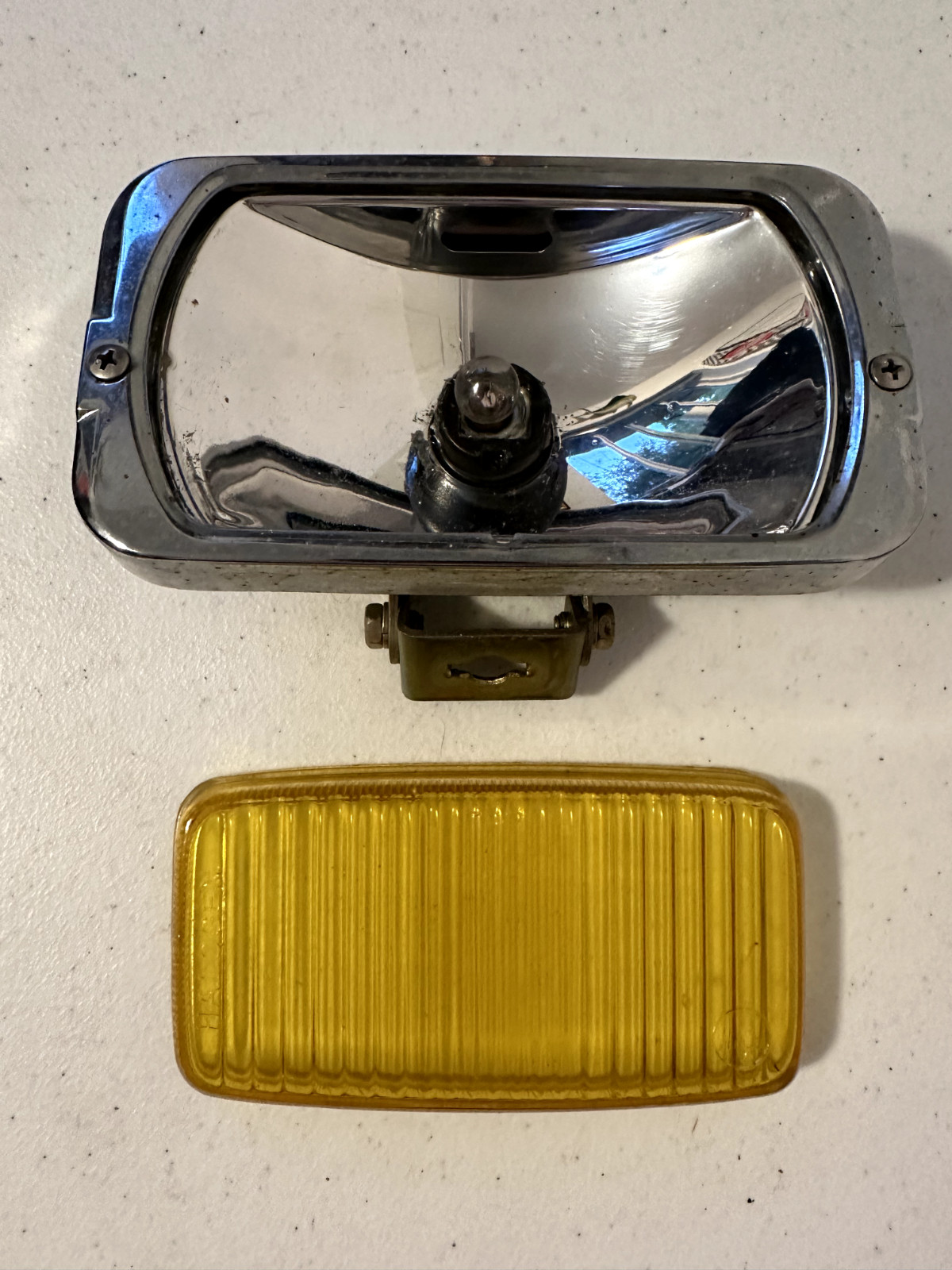 U030 Ushio 1 light bracket yellow amber fog Japan glass halogen vintage SAE W&Co
