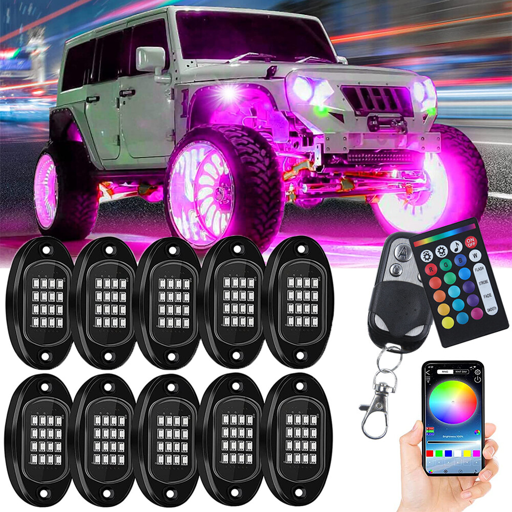 U28246 10 Pods RGB LED Under Body Glow Rock Lights Kit Bluetooth For Can G2U