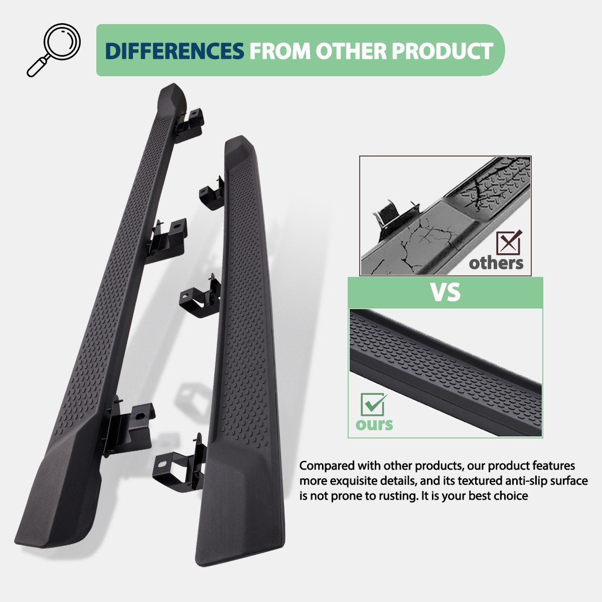 Features - Ideal Configuration: Compatible with the 4-door running board of the 2018 2019 2020 2021 2022 2023 2024 2025 Jeep Wrangler JL, ensuring perfect integration with your vehicle - Unique Design: This running board features an OE-style design, offering a simple yet stylish look that adds a cool and rugged appearance to your vehicle - Material: Made from 8-gauge (5/32 inch) thick PP material and Dacromet-coated screws, providing significant advantages in long-term anti-oxidation and waterproofing. It can support up to 500 lbs, ensuring long-lasting and safety - Relevant Information: The running board is 75 inches long, with a tread width of 6 inches. Package Dimensions: 77x13x9 inches; Package Weight: 36 lbs. Installation is simple and requires no additional drilling, making it easy to install - Package Includes: 1 x Pair of running boards (one for each side), 6 x brackets and 1 x Pack of screws . If you encounter any issues, please contact us for professional instructions. We are more than happy to assist you with any questions or concerns * * * On Nov 19, 2025 at 00:46:36 PST, seller added the following information: