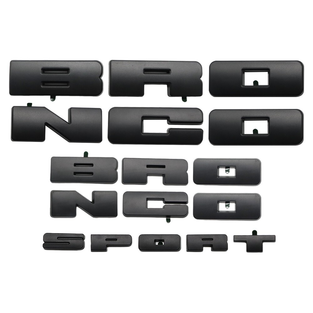 🔧 Main specifications -Material: Our letters are made of high-quality ABS plastic material.  Exquisite surface design, beautiful and durable, UV stable, never fades under all extreme conditions, and long-lasting. -Compatibility: for Bronco 2021-2026 -Installation area: Insert letters Grille+Tailgate 🌟 Product Highlights ✅ Precision molding: 1:1 OEM design, seamless installation ✅ Beautiful appearance: Install our letters to make your car tailgate eye-catching. ✅ Multi scenario use: daily commuting/off-road driving/weather protection (adaptive function) 📦 Package includes 1 Set Badges ⚠ Important Note ▶ Carefully check the vehicle year/model before placing an order ▶ Shipping from US warehouse with 30 day worry free return policy