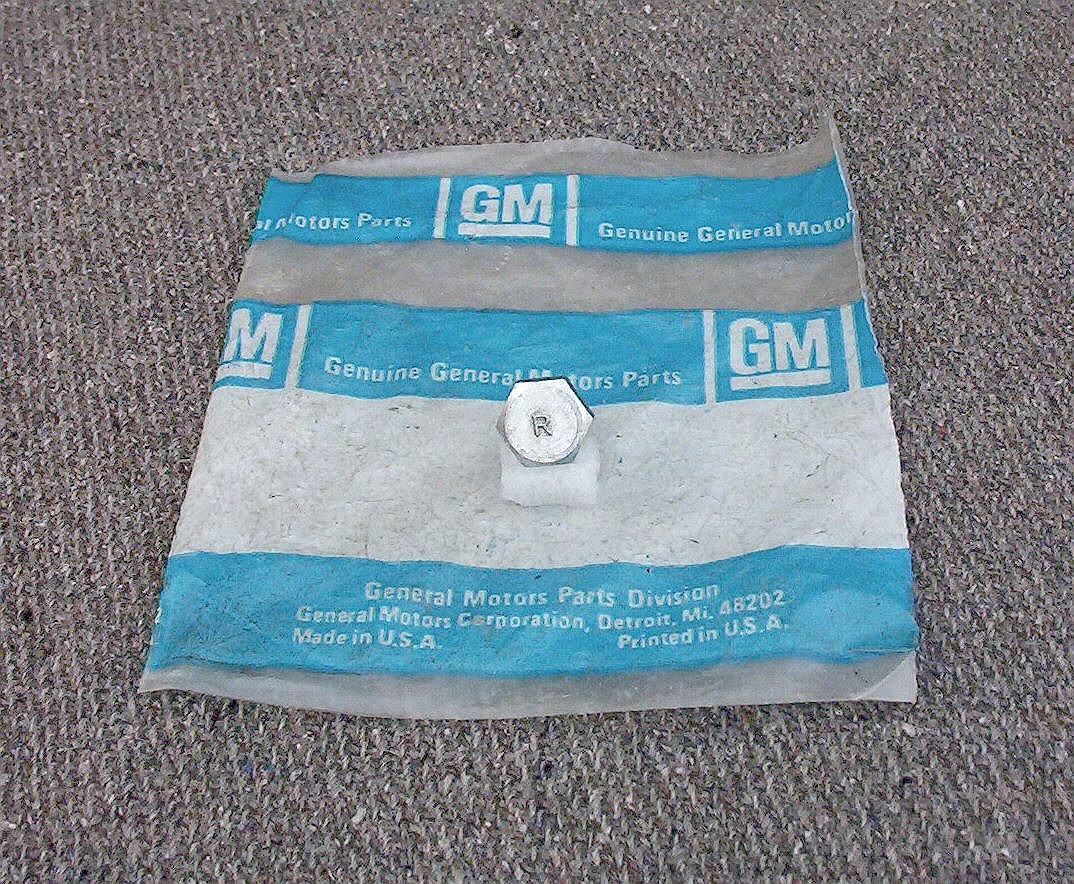 **1964 - 1973 Chevrolet Models** **Valve Cover Bolt** **Letter "R" Head Mark** **GM Part # 180016** **Used** **Item Description:** **This is a Used Original GM Valve Cover Bolt for 1964 - 1973** **Chevrolet models.** **Listed below are the models the bolt fits.** **1964 - 1965 Models: Bel Air, Biscayne, Chevelle, Chevy II,** **Corvette, Impala, Malibu** **1966 Models: Bel Air, Biscayne, Caprice, Chevelle, Chevy II,** **Corvette, Impala, Malibu** **1967 - 1968 Models: Bel Air, Biscayne, Camaro, Caprice,** **Chevelle, Chevy II, Corvette, Impala, Malibu** **1969 - 1972 Models: Bel Air, Biscayne, Camaro, Caprice,** **Chevelle, Corvette, Impala, Malibu, Nova** **1973 Models: Bel Air, Camaro, Caprice, Chevelle, Corvette,** **Impala, Laguna, Malibu, Nova** The bolt is in very good condition, but does show some surface wear. The bolt's size is 1/4" - 20 x 1/2". Head mark is the letter "R". The GM part number for the bolt is 180016. I will send you an email letting you know the package has been shipped, and the package's tracking number. **You must be satisfied with your purchase or you can return the part for a prompt and courteous refund.** Just let me know within 30 days after you receive your order that you are going to return the part. All I ask is that the part is returned in the same condition as you received it in. **Just click on the "Buy It Now" button** **at the top of the listing to purchase the Valve Cover Bolt.** **Thanks For Looking!**
