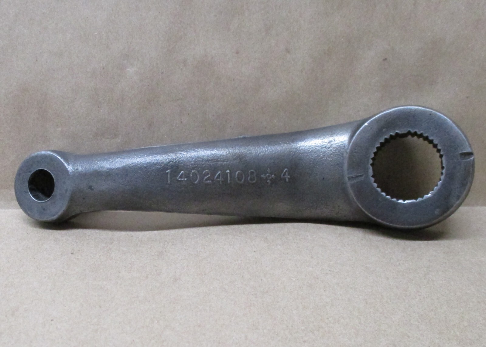 **FOR SALE:** **USED OEM GM POWER STEERING PITMAN ARM** **PICTURES ARE OF THE ACTUAL PART THAT YOU ARE PURCHASING.** **PLEASE LOOK CAREFULLY AND ASK ALL QUESTIONS PRIOR TO PURCHASE** **PART#** **14024108** **FITS NUMEROUS 1970'S - 1980's GM, CHEVROLET, PONTIAC, BUICK AND OLDSMOBILE VEHICLES** **LENGTH 8"** **6" CENTER TO CENTER** **32 SPLINES** **IT'S THE BUYERS RESPONSIBILITY TO MAKE CERTAIN TO MATCH YOUR PART NUMBER TO ENSURE PROPER FITMENT.** **ALL BIDDERS PLEASE READ THE FOLLOWING CAREFULLY** SHIPPING PRICE BASED ON LOWER 48 UNITED STATES ONLY Please contact us for cost of shipping outside the lower 48 **WARRANTY INFORMATION** All items are considered good-used unless otherwise specified **WARRANTY – 30 DAYS FROM DATE OF PURCHASE** **WE WILL CHARGE A 20% RESTOCKING FEE ON RETURNED ITEMS** **RETURN SHIPPING COST IS THE RESPONSIBILITY OF THE BUYER** If there is any problem with this item, please let us know immediately and give us a chance to address the situation before leaving negative feedback. We strive for 100% positive feedback with every transaction. We are willing to work out any dispute that may come up with an item purchased from us. Contact us, we will make it right! Though very unlikely, in the case where a part is faulty, we will gladly replace the part if one is available.