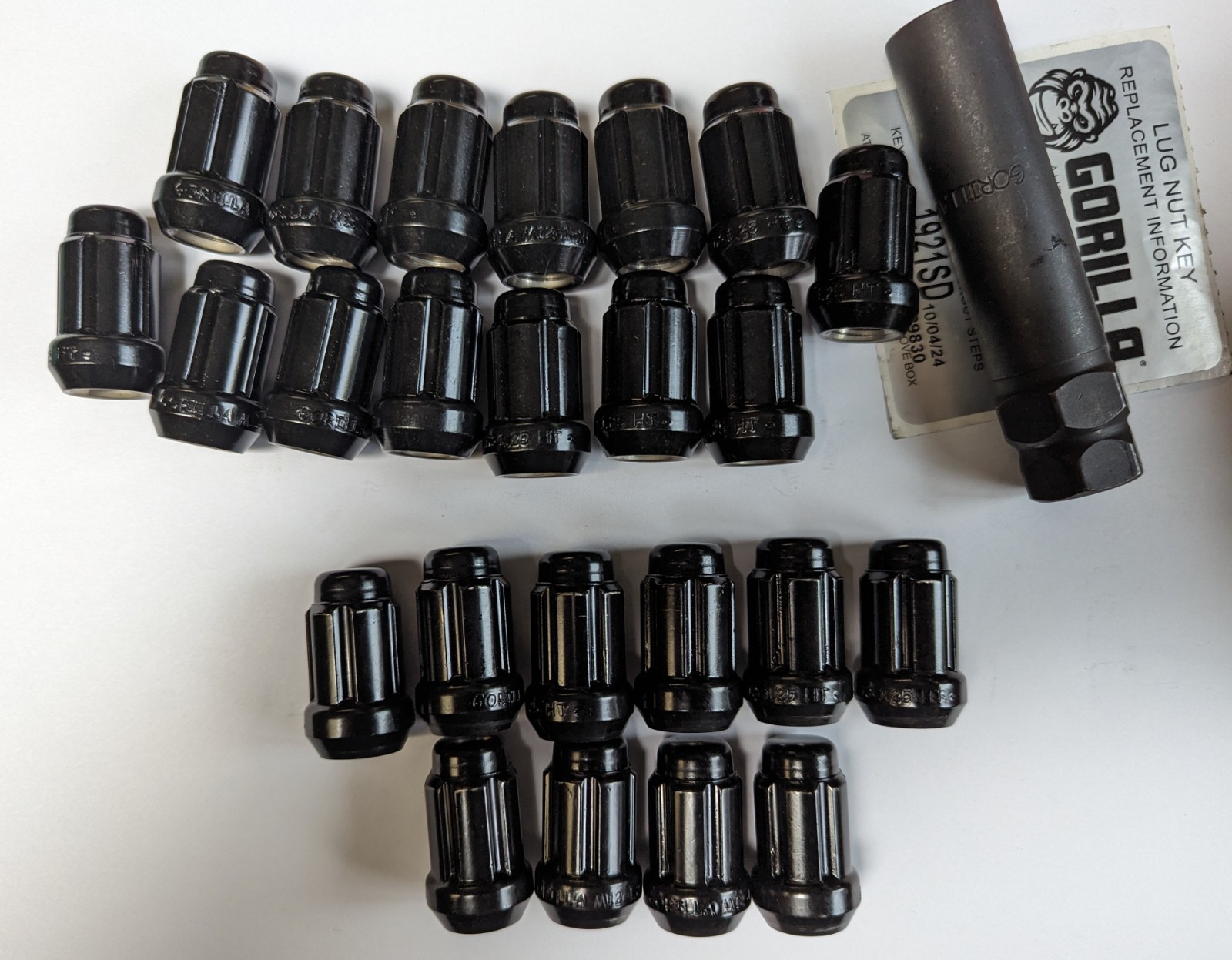 (Used) 24 Gorilla Spline Lug Nuts, 12mm x 1.25, Black, Small Diam K6CS-12125BGR