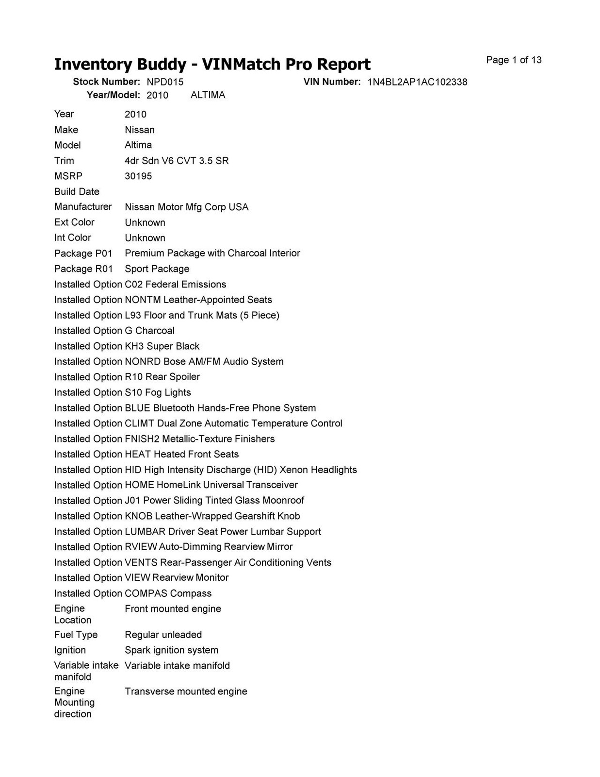 - VIN: 1N4BL2AP1AC102338