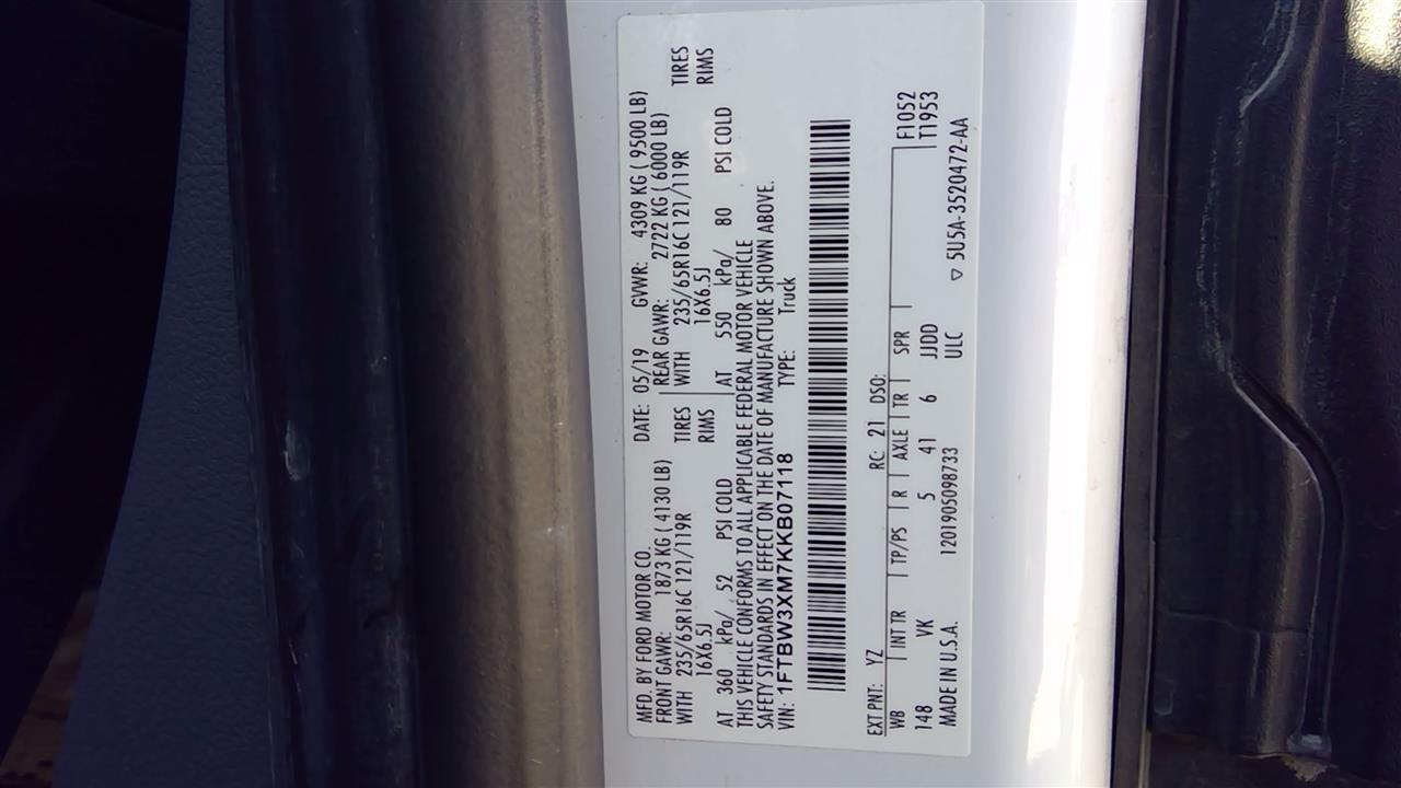 - VIN: 1FTBW3XM7KKB07118