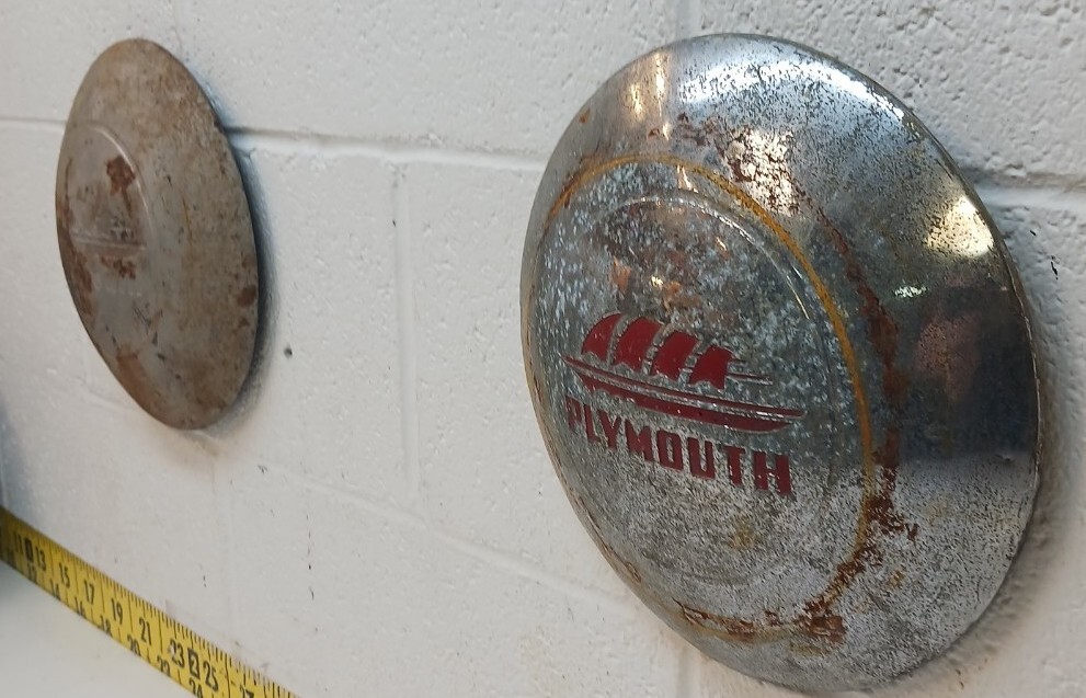 Used OEM Mopar Set of 2 10" Dog Dish Hubcaps 1946-1948 Plymouth (DD396)