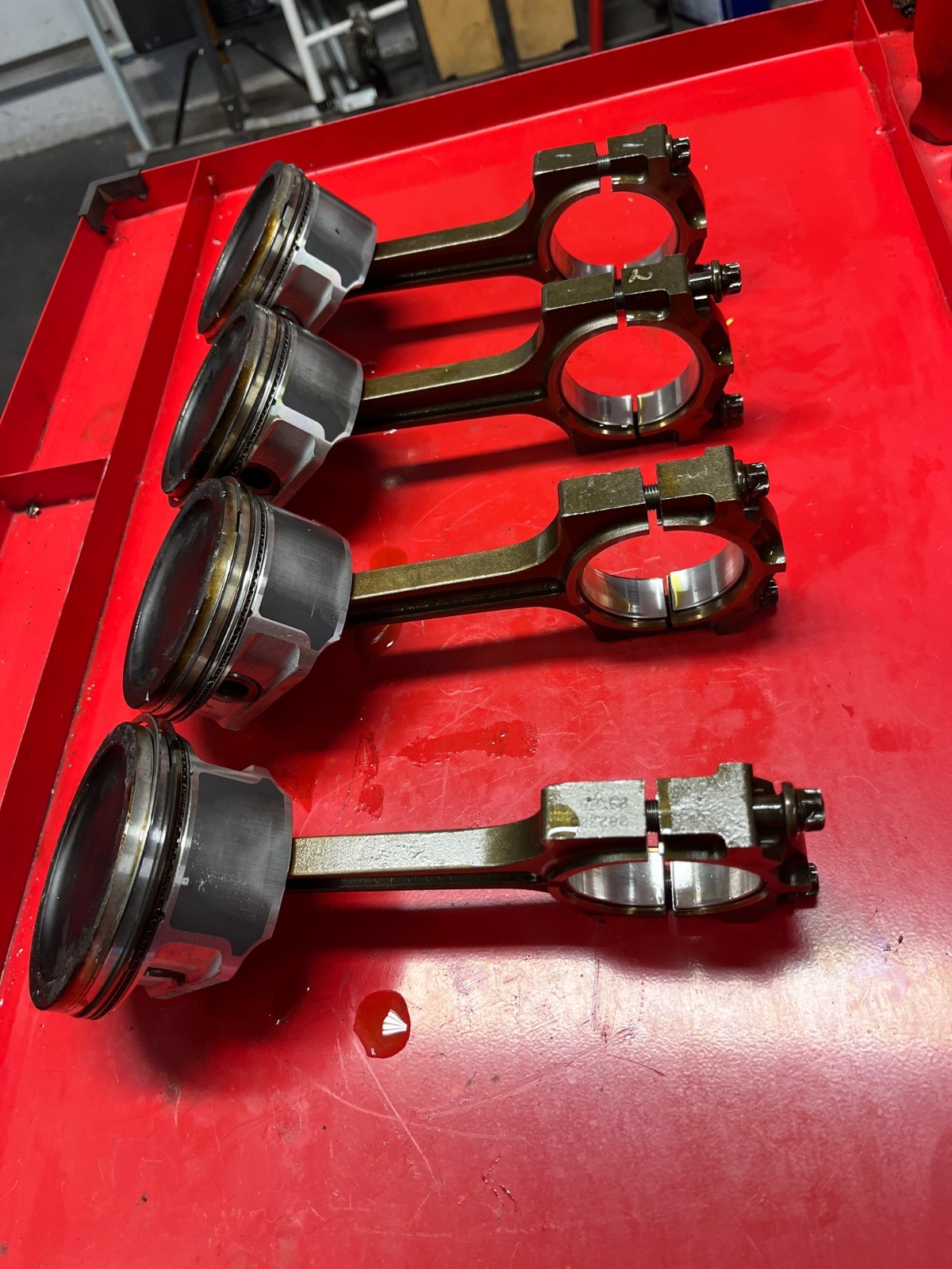 A set of 4 connecting rods with std size pistons that come out of a 2006 ford ranger 2.3L duratec engine in great condition.