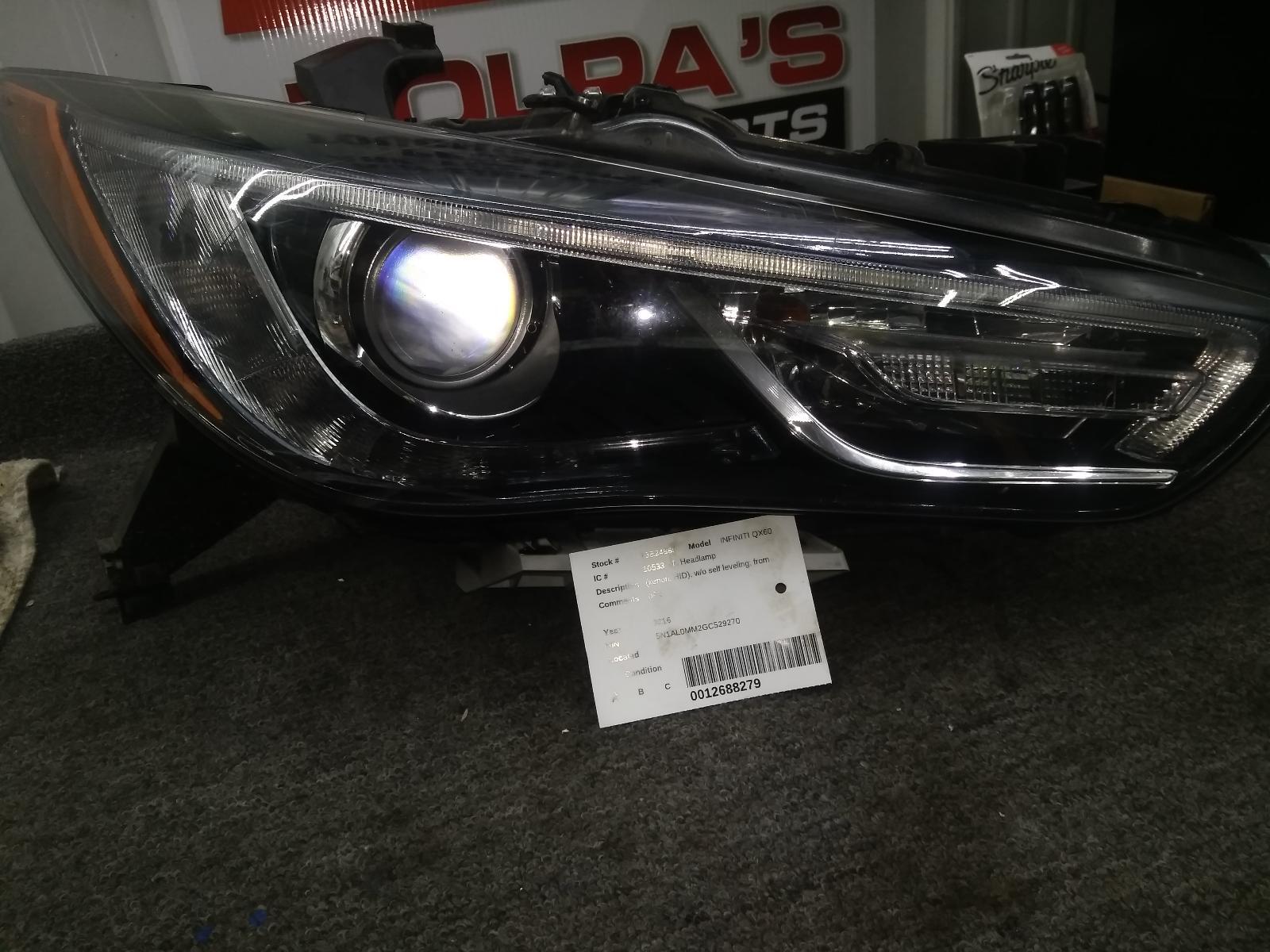 Thank you. Save money and time in the repair shop. Original parts mean a perfect fit. Every part is cleaned, tested and inspected by experts. All parts are covered by warranty. Parts go back into cars rather than landfill. Type Headlight Assembly See Item Specifics section for additional specifications about this part. This is a recycled product. URG is a group of certified recyclers of quality replacement parts. Unless specified as Universal this is a direct fit Headlight Assembly. A reminder that this listing is for a single Headlight Assembly which may be less than you need for your application. Check the fitment information for the qty your vehicle requires. Also review the notes section in the compatibility chart for additional specifications about this part. This part generally fits INFINITI vehicles and includes models such as QX60 with the trims of Base Sport Utility 4-Door. The engin e types may include 3.5L 3498CC V6 GAS DOHC Naturally Aspirated. This part fits vehicles made in the following years 2016. To confirm that this part fits your vehicle, enter your vehicle's Year, Make, Model, Trim and Engine in the **Compatibility Table**. Also review the notes section in the compatibility chart for additional specifications about this part. This is provided for reference only and does not guarantee that the part your are buying is identical to the part numbers from the brands listed below. To confirm that this part fits your vehicle, enter your vehicle's Year, Make, Model, Trim and Engine in the **Compatibility Table**. THE SELLER** Much of our success is based upon a simple theory;“If you don’t take care of the customer, someone else will!”Award Winning Salvage OperationWe have won several awards over the years. This shows dedication, and achievement in the recycling community. Motivation and commitment has made us a leader in the past and will continue into the future. Tolpa’s Auto Parts Started in 1987. Since then we have become a leader in the industry. Much of our success is based upon a simple theory; “If you don’t take care of the customer, someone else will!” Since our early beginnings we have been a member of the Automotive Recyclers Association of New York. We have won several awards over the years, including Most Improved Salvage Operation, Best Exterior and Best Interior. Over the last 11 years we have won 8 consecutive times. This makes Tolpa’s Auto Parts the most improved yard in New York State. Motivation and commitment has made us a leader in the past and will continue to make us a leader in the future. We are committed to supplying the automotive repair industry with quality parts and reasonable prices with skilled and motivated employees using the most advanced technologies available.