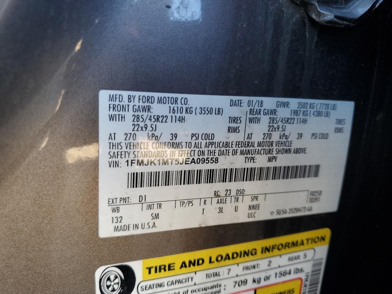 - VIN: 1FMJK1MT5JEA09558