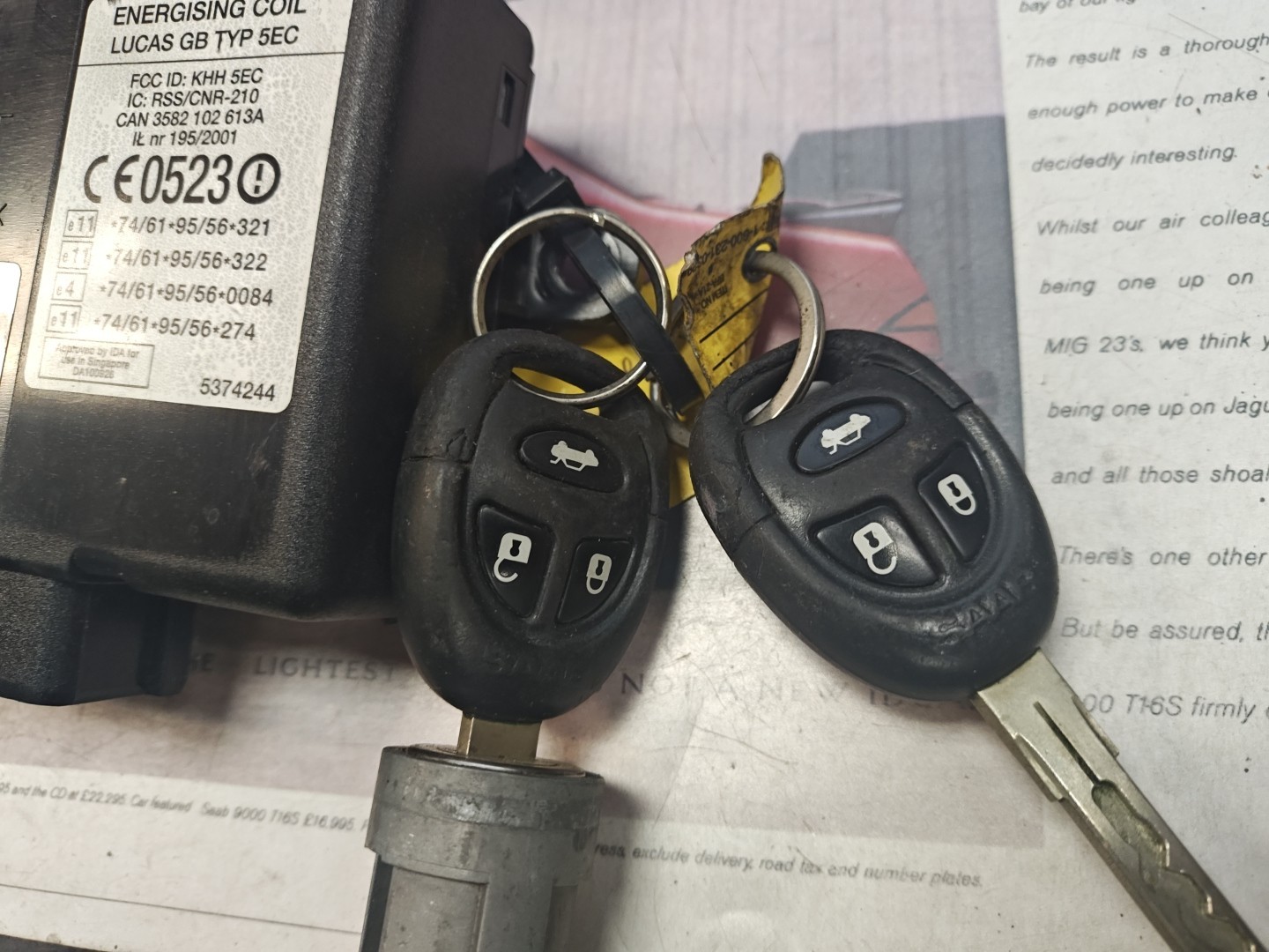 Used Saab 9-5 TWICE Module With 2 Keys + Ignition Lock Cylinder 5042239 12767180