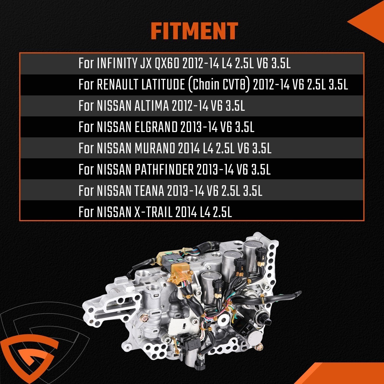JF017E RE0F11E Valve Body CVT Transmission For Nissan Murano Pathfinder 3.5L 31705-29X6D **Features:** Remanufactured and High Quality. Perform as well as new ones,100% Tested to gurantee. According to factory specifications, perfect match to car. Made of high quality material. **Part Number:** JF017E, RE0F11E, 31705-29X0B, 31705-29X0E, 31705-29X6D, 31705-29X1E **Fitment:** Infiniti JX\\QX60 2012-2014 L4 2.5L V6 3.5L Nissan Renault Latitude (Chain CVT8) 2012-2014 V6 2.5L 3.5L Nissan Altima 2012-2014 V6 3.5L Nissan Elgrand 2013-2014 V6 3.5L Nissan Murano 2014 L4 2.5L V6 3.5L Nissan Pathfinder 2013-2014 V6 3.5L Nissan Teana 2013-2014 V6 2.5L 3.5L Nissan X-TRAIL 2014 L4 2.5L Renault Latitude 2.5L 3.5L 2012-2014 **Packag includes:** 1 x CVT Transmission Valve Body