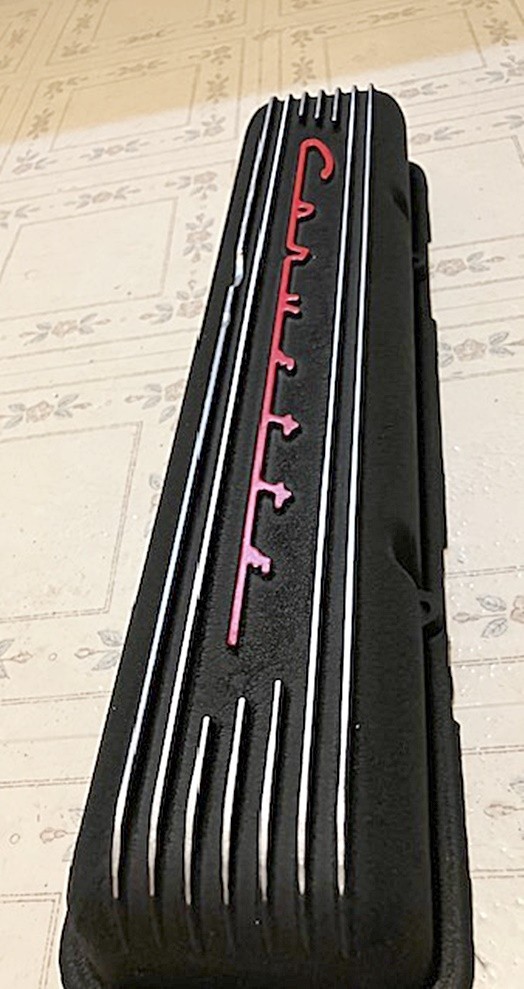 VALVE COVER,7 FIN,Chevy Corvette 283 327,Man Cave garage VINTAGE DISPLAY, wall hanger ONLY This is an early SINGLE Chevy 283/327,finned, aluminum valve cover. Whether you are an early model vette restorer/owner or a late model Z06 C8 person, show your loyalty by displaying this ONE valve cover. This VINTAGE valve cover is NOT intended to be a restoration part,it is however an original part, NOT a chinese repro. This cover is for the guy/gal for his ‘mancave’ / garage or her ‘she shed’. It IS an original. I redo single or oddball, vintage hot rod or stock valve covers, but only re-do the ones with Embossed lettering(script) or raised fins. I re-do these myself with a baked on black wrinkle coat and then hand paint the script (or hand sand the fins) with a corresponding color of paint to that brand of engine or because I only do American engines I may choose Red/White/Blue. I also use satin clearcoat afterwards even on the inside so 'stuff' doesn't fall out while hanging up. THIS valve cover is from a ‘Vette’ small block and although the engines were orange back then, I chose RED for the letters for the right pop w/o looking too Halloween with the black and orange. This particular cover came out pretty well overall. The ‘wrinkle’ is even although not overly heavy. DISCLAIMER= If you are 10' away, and squint, this looks perfectly done. This is intended to be a display/conversation piece, but look around for these EARLY finned covers that are this straight and you will see how much money people want for them. I have to ‘pay up’ to find decent original cores. NOTE\*\*- KNOW that you want this because I no longer accept returns. \_--NOTE\*\*- I do not claim to be an artist or even to have artistic skills, you will find flaws. NOTE\*\*-I mail out on Mondays & Thursdays. NOTE\*\*-If you don't see a best offer option, then it's not an option. NOTE\*\* If you want the letters done in a different color I may be able to do that, but it has to be discussed before packaging. Sorry, NO apo/fpo/dpo mailing anymore and not Canada. HOTROD hotrod streetrod street rod rat ratrod GM Chevrolet Chevy Buick Olds Oldsmobile Pontiac Cadillac Mopar Dodge Chrysler Plymouth Desoto caddy rocket Ford Mercury Lincoln Zephyr Drag track race racing moonshine runner road Sprint solo ONE single lone auto automotive art automobilia vette vet corvette