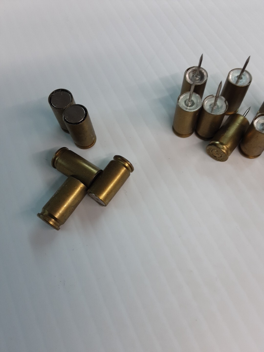 Valve stem caps made from 9 MM..brass cases. Plus push pins and magnets