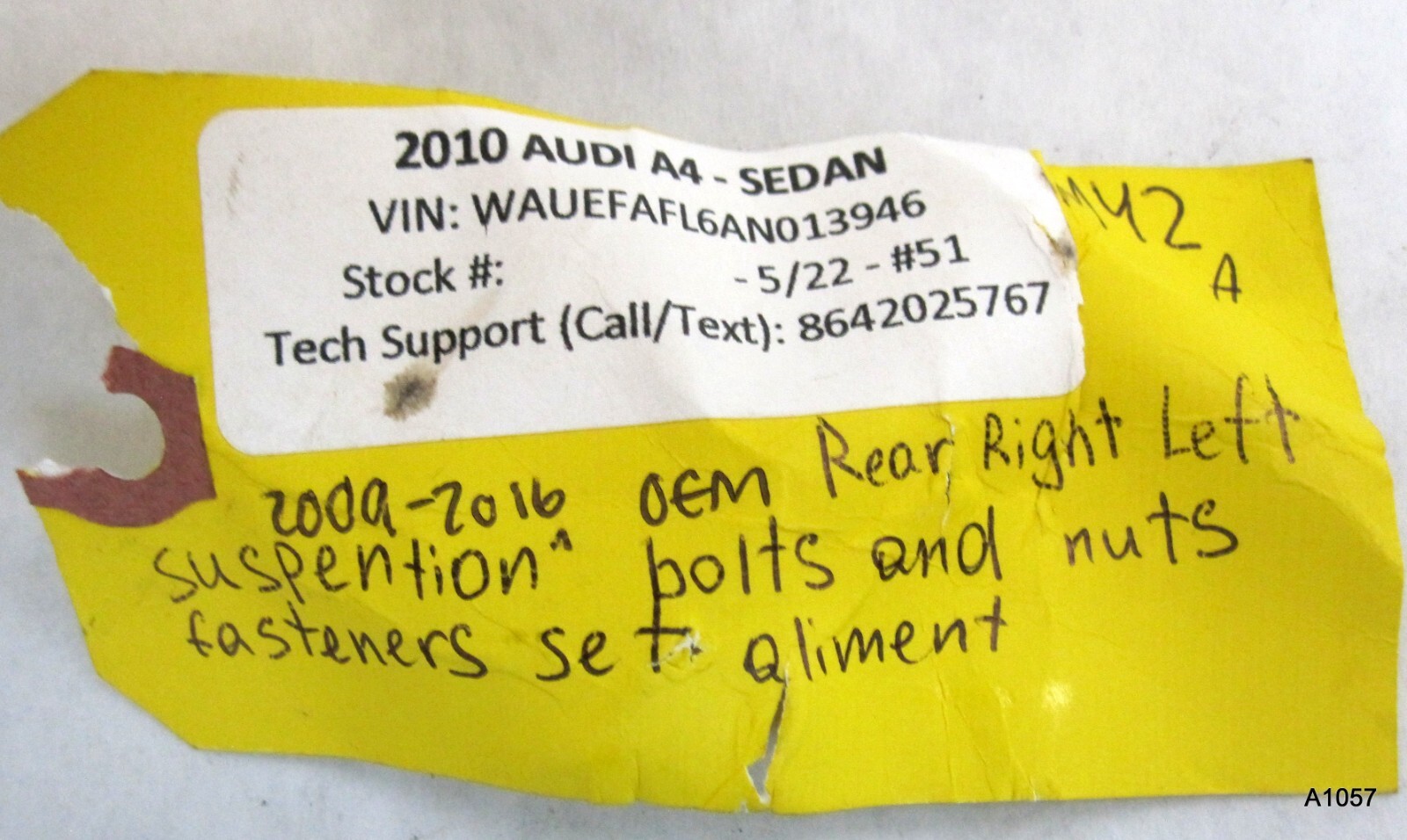 Various OEM 10-16 AUDI B8 A4 Rear Right Left Suspension Bolts Hardware Various used bolts from a 2010 Audi A4 \-\-\------------------------------------------------------------------------------------ IF YOU HAVE ANY ISSUES WITH THE ORDER PLEASE MESSAGE ME FIRST I usually answer questions MONDAY through FRIDAY, please allow 24 hours during the week for me to get back to you I take photos of the exact item that you will get, unless I state otherwise. Please look at ALL the pictures, I try to match CURRENT cheaper price (I don’t match past prices). Location: A1057ZXC 0324 4202