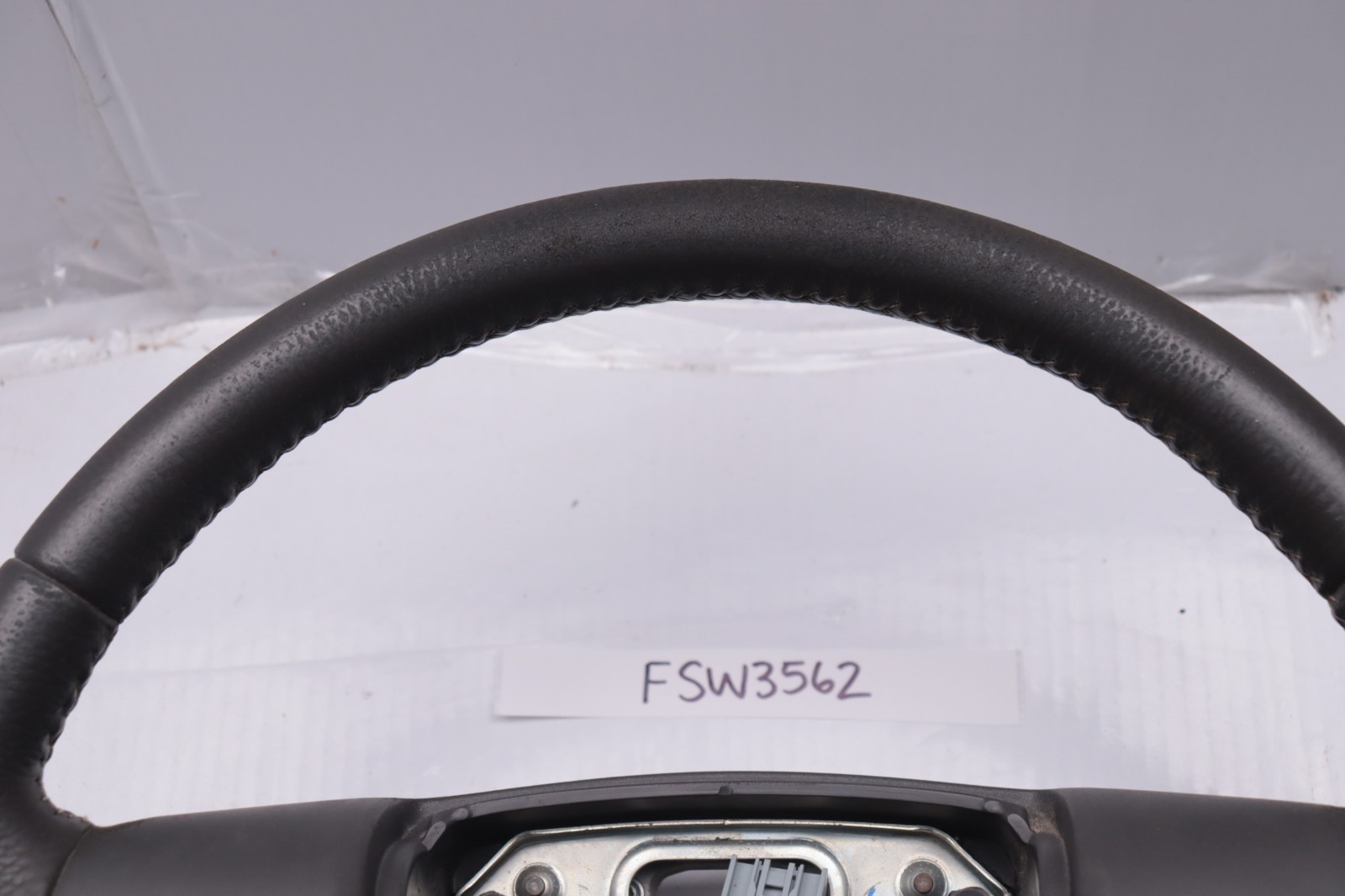 Note: Cruise Buttons have been removed. You can easily swap yours over. Color: Dusk Gray Very Good Condition 2009-2014 Ford F-150 **Steering Wheel**. Used but still with lots of life left. Leather shows heavy wear/fading all around, especially at the top. Rubber shows heavy wear where it meets the leather. Scuffs and scratches around the wheel. Cruise buttons have been removed. Wiring is in good condition. Use pictures in conjunction with the description. This has the **LARGE GRAY** Connector. Check connections and dimensions prior to purchase to make sure this fits your vehicle.