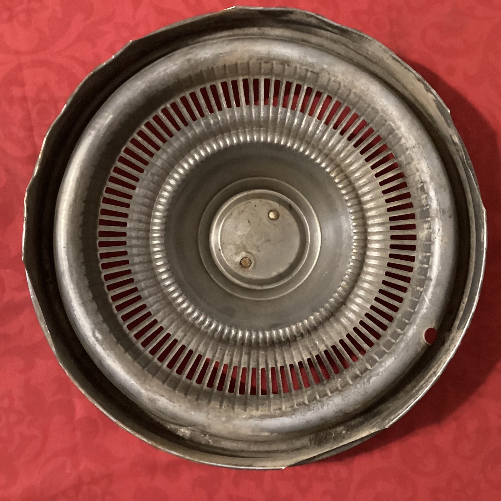 Vintage ~ RARE!! ~ 1950s/60s Chevy/Chevrolet Car ~ Wheel Cover Metal silver Hub Cap With CHEVY Emblem Measures about 14” (refer to pics) Condition: \*\* AS-IS \*\* FROM AN ESTATE SALE \*\* Good condition for an item that’s over 50 years old. \*\* Has some dents/scratches. Otherwise, No major dents or scratches (pictured). Refer to pics for more condition detail.