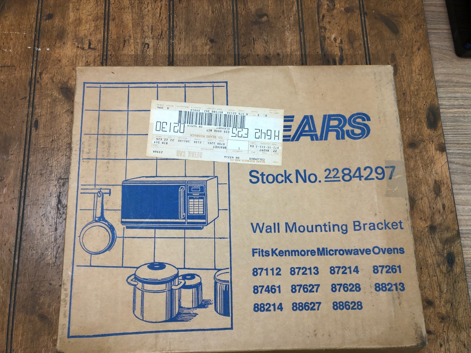 Brand new-old stock-Sears mounting kit for microwave. See pictures for types of microwaves it fits. Will be shipped inside a new box to keep original box intact.