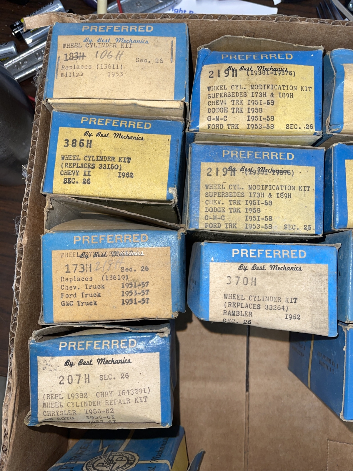 YOU GET THEM ALL THESE ARE VINTAGE OLD PARTS SOME BOXES NOT FULL THE 4 ON BOTTOM OF FIRST PICK ARE PARTIALS MOST ARE FULL AS SHOWN VINTAGE Chevy Willys Dodge Ford De Soto WHEEL CYLINDER REPAIR KIts Old. Thanks JERRY RT50 str 1d under vex