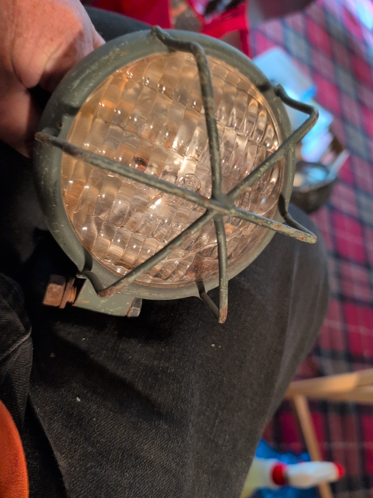 The product is a vintage clear lens 4" work light lamp designed for car, truck, or military use. Made in the United States, this fog light is suitable for placement on the left or right front of a vehicle. While untested, this unique and nostalgic piece could add a touch of retro charm to any vehicle in need of additional lighting. It has a crack in the lens as pointed out in the pictures. The lens seems solid