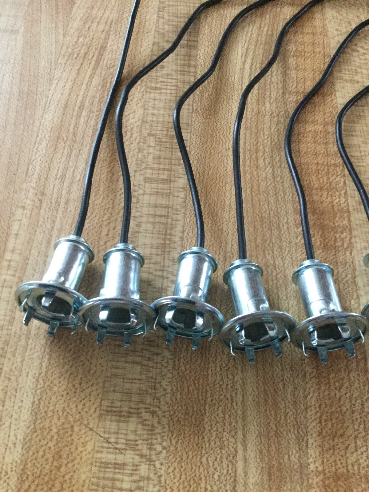 **Buying 6 new dash or gauge light socket kits for any number of the small size 9mm light bulb (see charts last 3 pics) and 5/8 size hole in the gauge cluster. These light sockets are high quality reproductions. Includes 12 inch pigtail wires. You will get the parts ready for you to assemble shipped as in the last 5 pics. 6 pieces of each.** **Funny how old bulbs are metric size.** **They fit any o.e. or aftermarket 5/8 size light socket hole out there. Any brand of gauges. Any O.E. dash panel with the 5/8 size hole.** **I have these for 5.00 ea. in my other listings.** **I have bare dash light gauge light sockets with hardware in about any possible way you need it in my other listings. If you can’t find them in my store just ask.** **S/H lower 48 us is 5.00. .20 cents addl set.** **International shipping is 14.00.** **Sold as is. Seller accept returns within 15 days of purchase for any reason. Buyer pays for return shipping. Seller is not responsible for consequential or punitive damages of any kind for any reason whatsoever. Sellers liability is limited to the amount paid by buyer including shipping and handeling charges. Except as expressly set forth in the item description. Seller makes NO express or implied warranties of any kind whatsoever about this merchandis** **ELECTRICAL ITEMS MUST BE INSTALLED BY A PROFESSIONAL** **All Texas sales require 8.25% Texas sales tax.** **Just a side note to all shopping for a switch or switch sets for their antique car, hot rod, race car or truck build.** **I only sell quality parts. No junk here.** **I buy parts and pieces in bulk to make up matching switch sets. Most knobs fit most switch I sell but their is some that don't work out very well. If you like a certain knob, just ask if it will fit the switch your interested in. Most knobs have to be fitted to each switch.** **View my feedback and buy with confidence. I will not sell anything I would not use on my cars. I accept returns for any reason.**