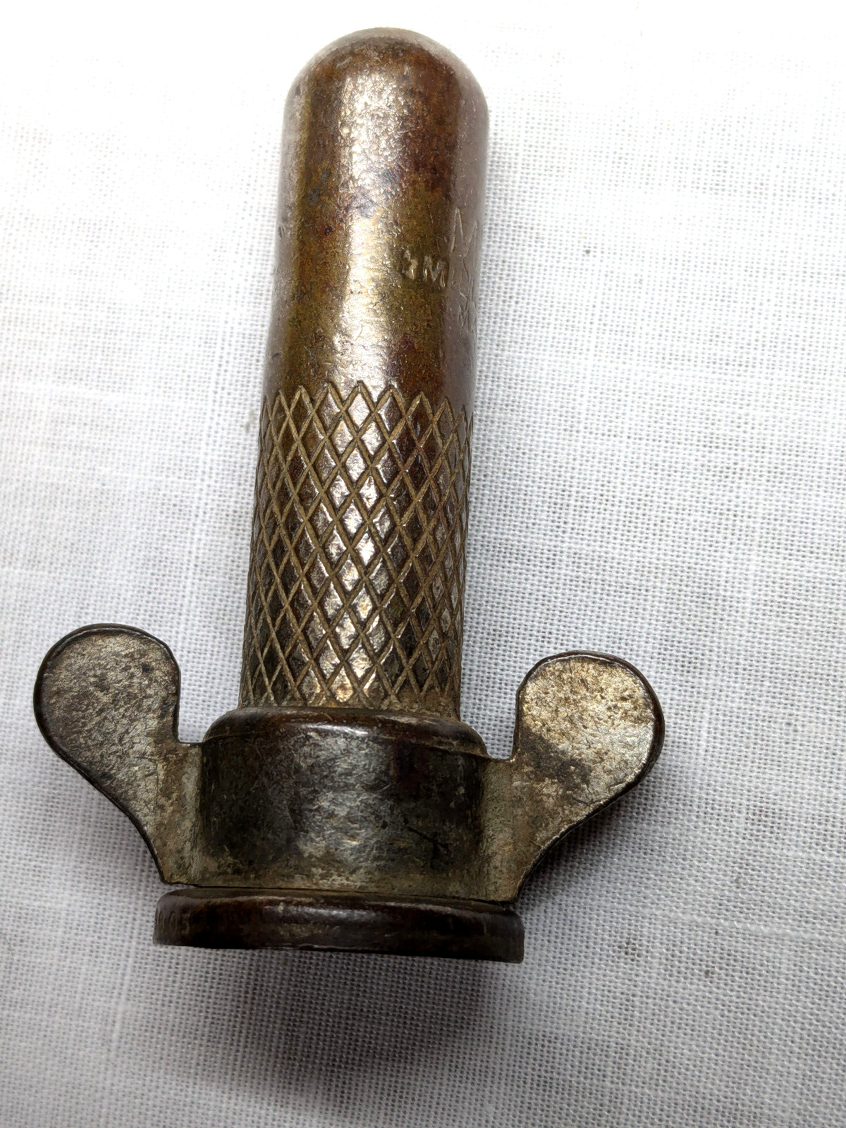 Here is a rare antique Michelin valve stem dust cover marked "Michelin", "Milltown, NJ", and "Made in U.S.A.". It is not magnetic, but I am not sure if it's brass or nickel. The inside threads appear to be in good shape. It's 2-1/2" long. On the outside, there are marks, tarnish, discoloration, scratches, and dust/dirt inside. See high resolution photos for more and use the magnify feature.