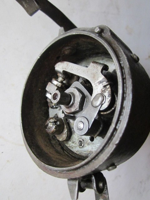 Vintage Remy Distributor-REMY IS MARKED ON POINTS, WHICH OPEN AND CLOSE WHEN SHAFT ISA TURNED. THERE IS LITTLE OR NO PLAY IN THE SHAFT ADVANCE LEVER MOVES WELL-SEE PHOTOS FOR CONDITION