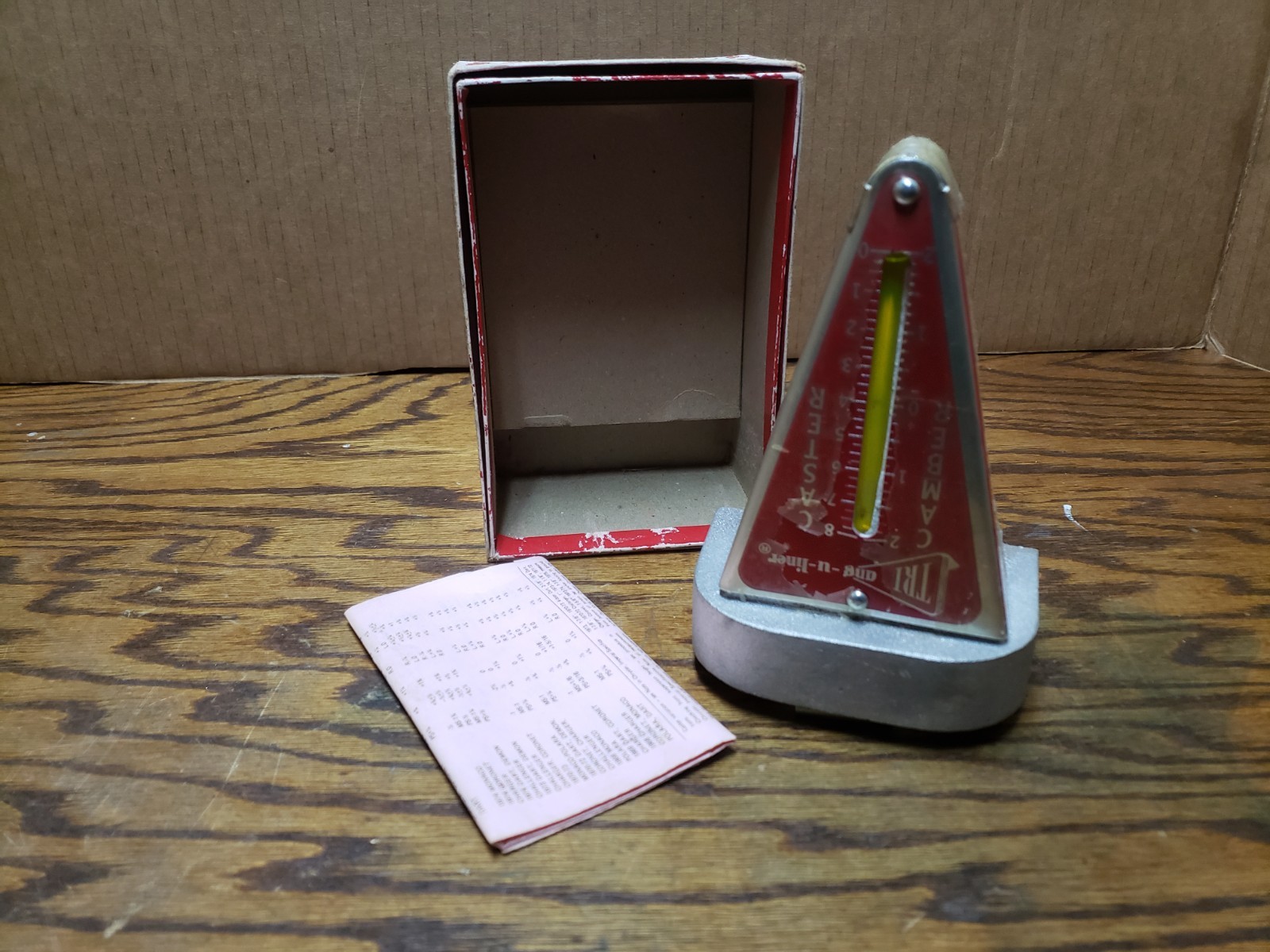 Vintage Tri-Ang-U-Liner Wheel Alignment Tool in Original Box w/ Instructions. Has magnets on base for attaching to Ferrous metal surfaces.