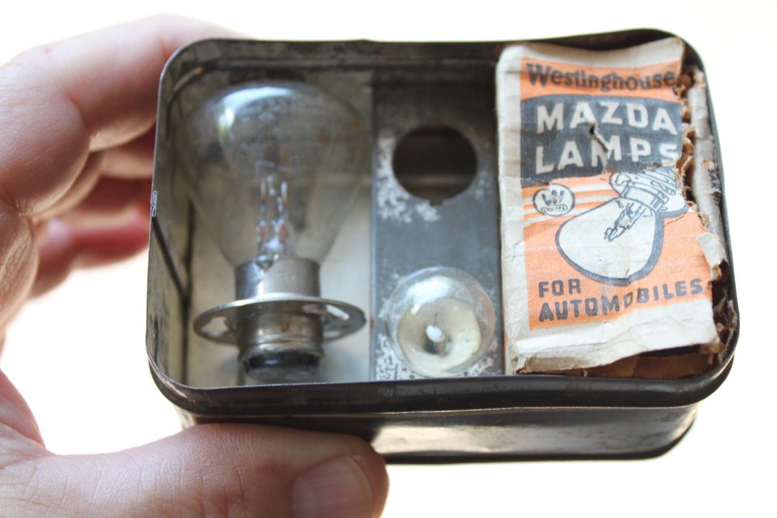 Vintage Tung Sol Works Fixed Focus Auto Lamps Bulb Mazda Advertising Tin NJ Ships Fast n Free Vintage tin with 3-Bulbs inside. From the Estate of a Major Antique Car Collector. See Pictures Ships Free inside USA 48-Contigous States. Inventory Location : MC/Steven/L76
