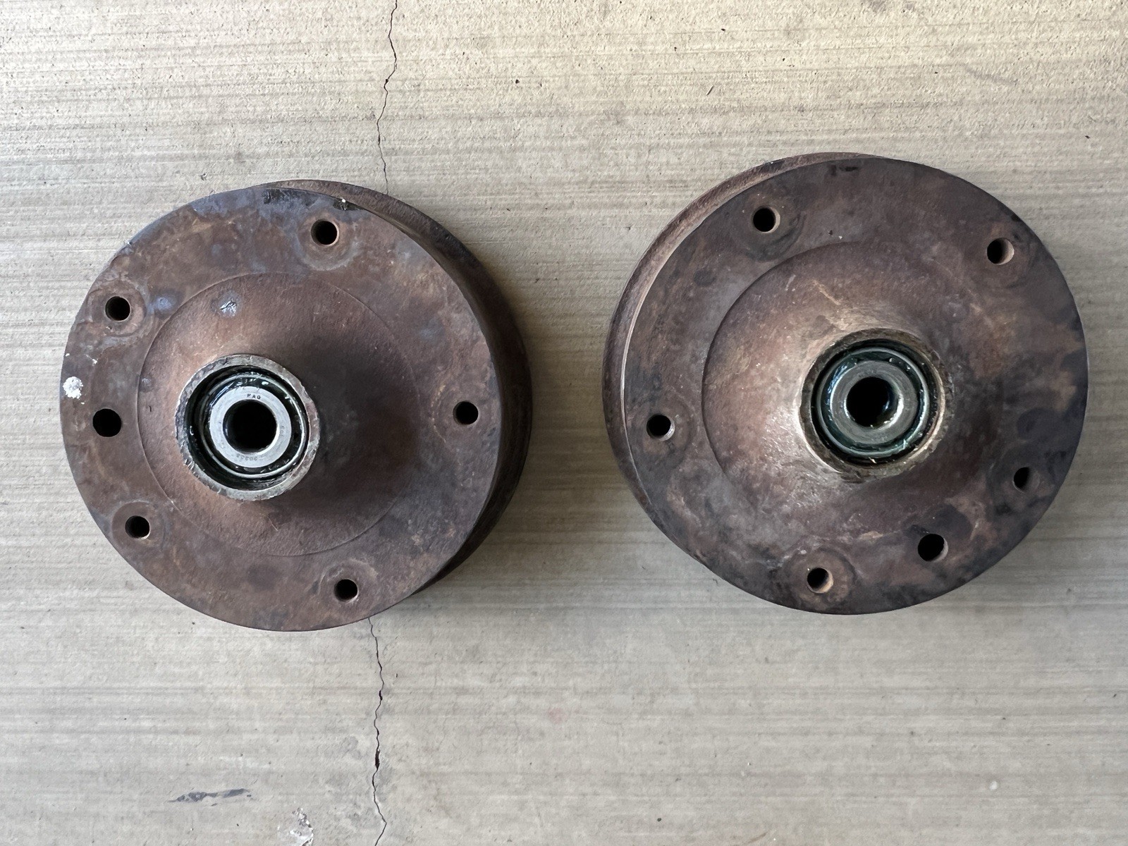 Pair of used VW Bus Front Brake Drums 1955-1963.Original German Drums.Bearings included.
