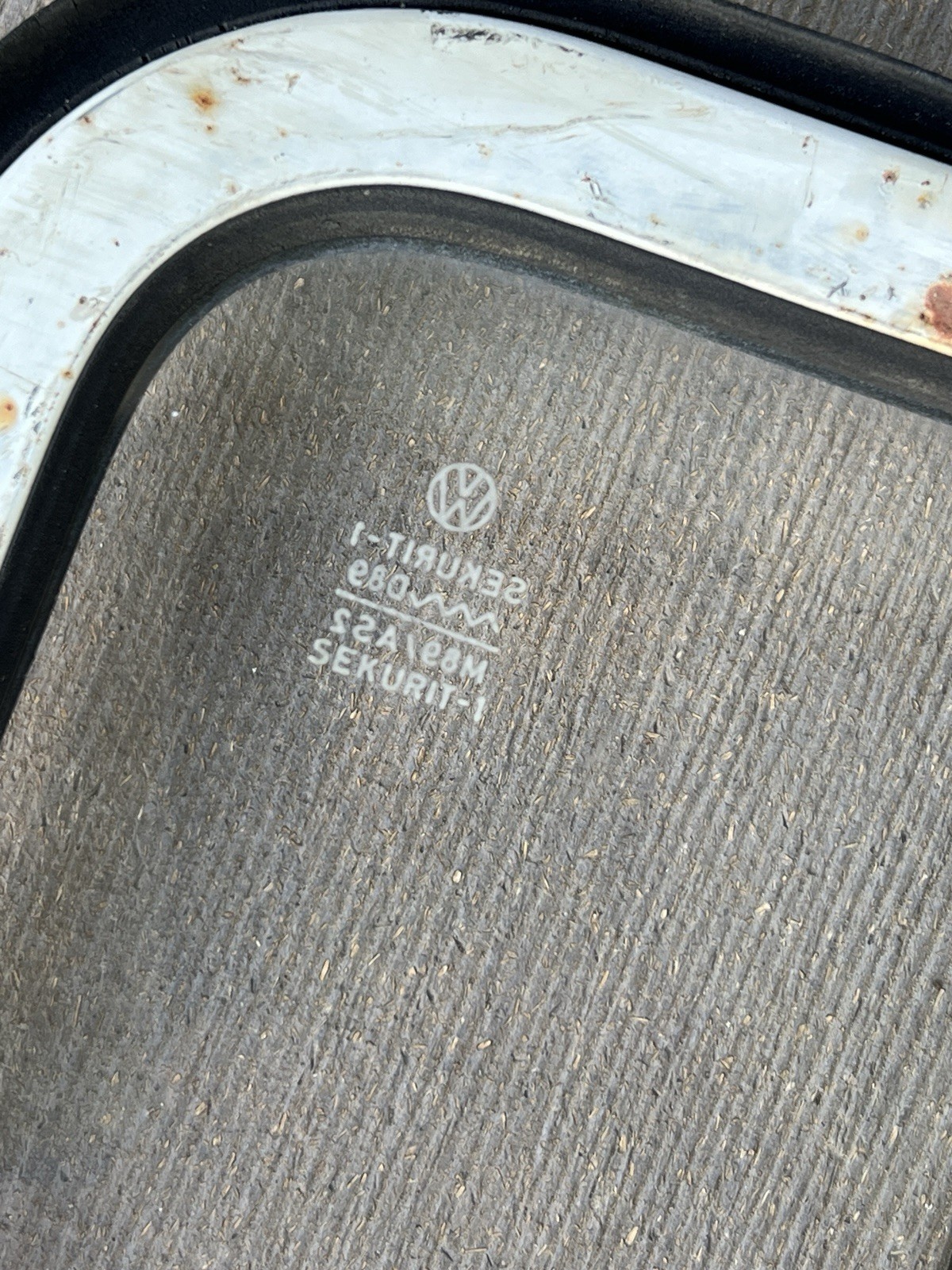 NOTE: Frame is bent only the glass is usable ( most likely).VW Bus Sekurit Right or Left Side Side Pop Out Window Glass.Fits 1955-1967.Some light scratches as all used glass has.