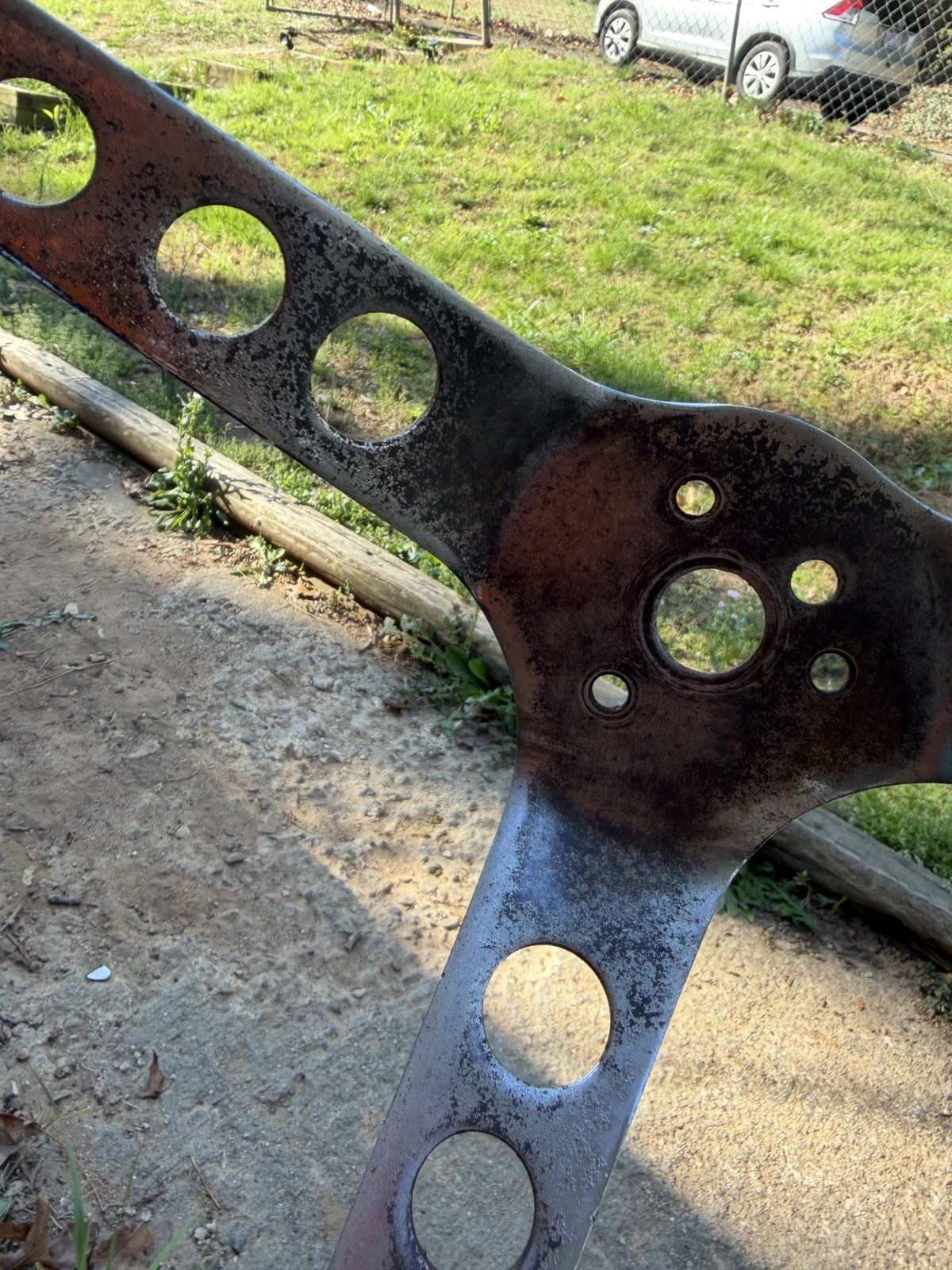 The Vintage Wood Grain Grant Three Spoke Steering Wheel is a unique and stylish addition to any classic car or truck. Made from high-quality wood, this steering wheel boasts a timeless design with a vintage touch. Has some rust around edges and inside. See photos for details - selling as is.
