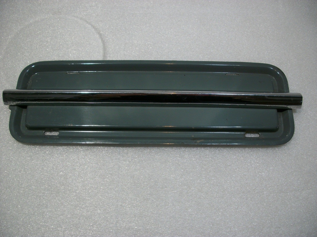 Radio delete plate for VW Beetles 1958-1960 with cast chrome trim. \*\*Listing is for ONE plate. When ordering, buyer must specify color choice, black or blue.\*\*